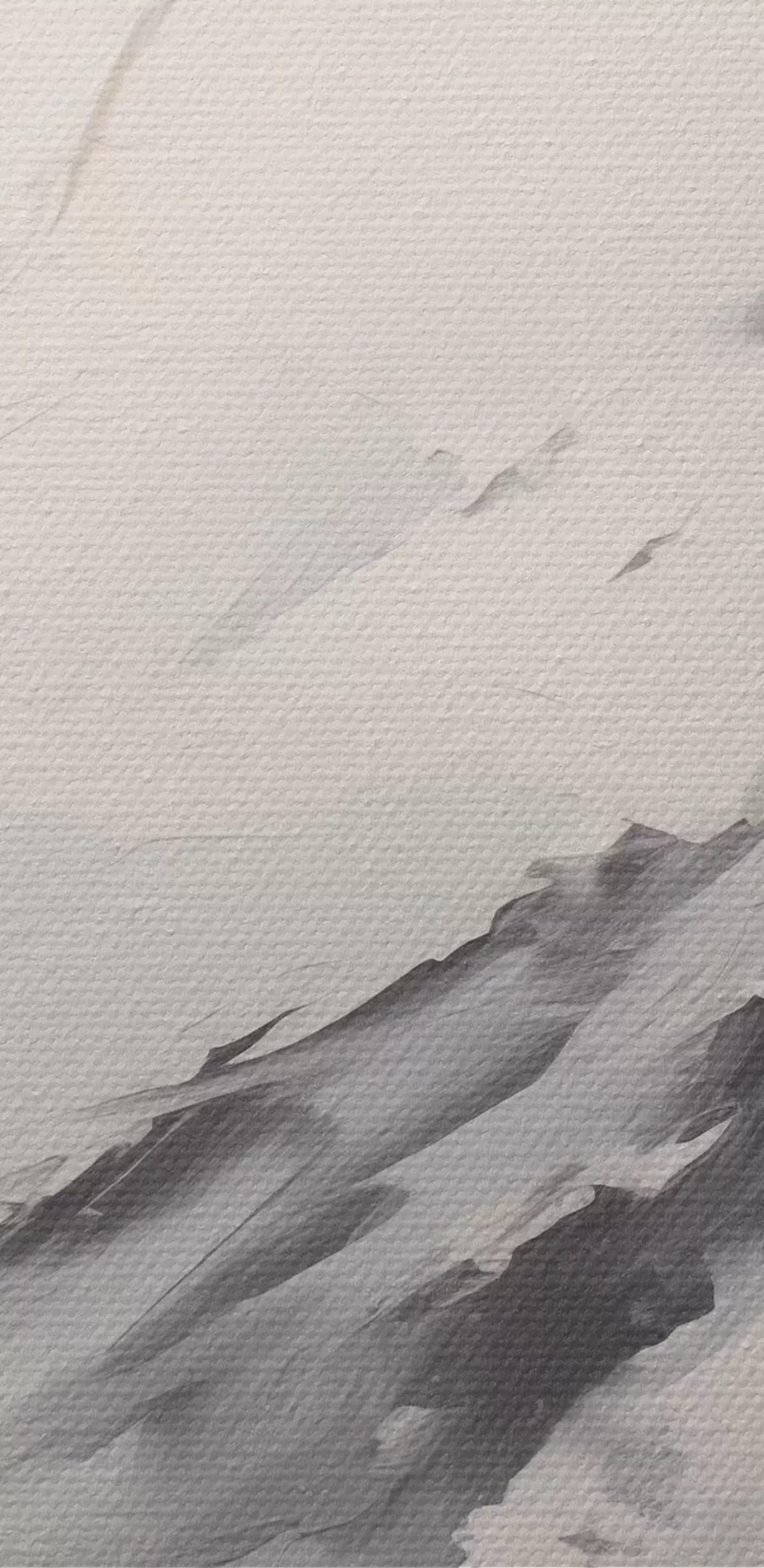 Tableaux rondes Sommets enneigés avec des ombres grises, ciel gris, coups de pinceau, texturé, minimaliste r45932
