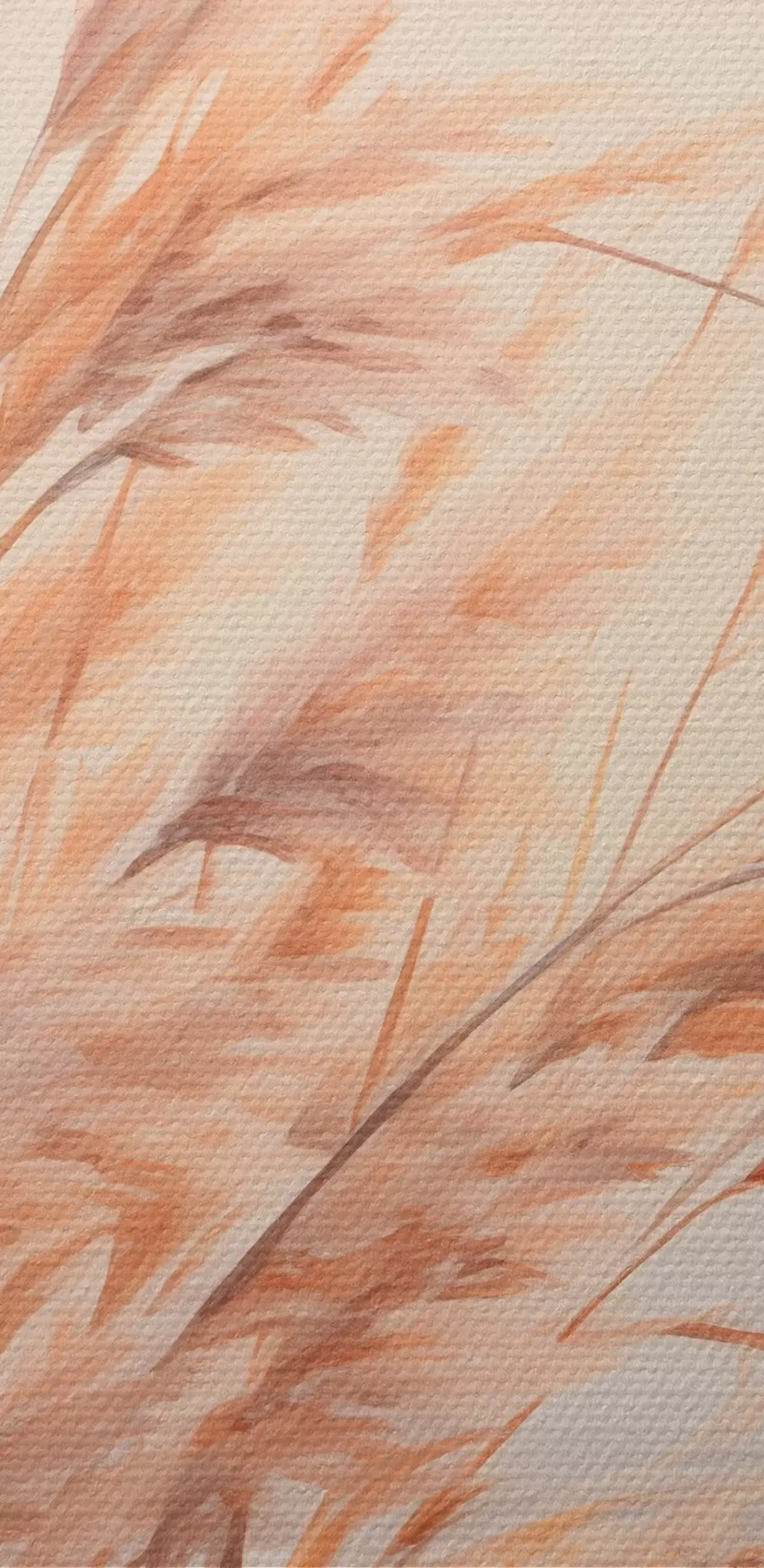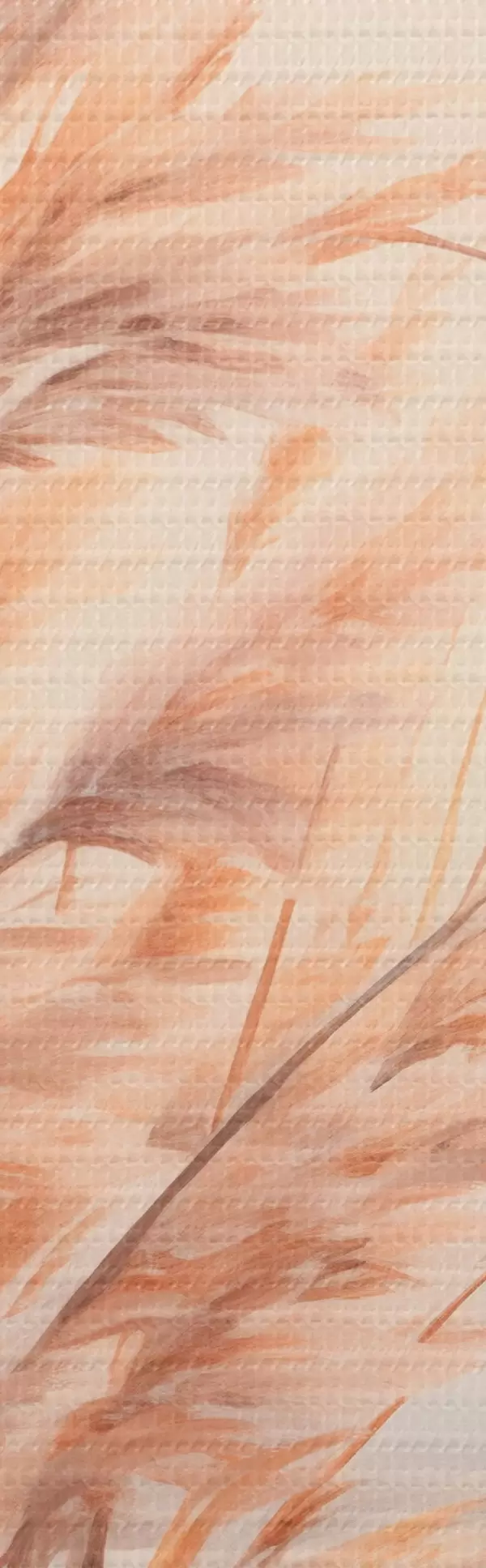 Tableaux rondes Herbe de la pampa avec une palette de couleurs orange pastel, un ciel rose pâle, un paysage paisible r45934
