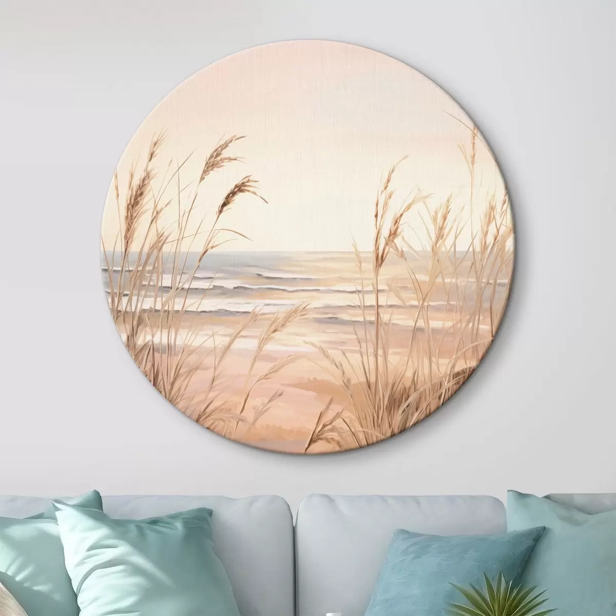 Tableaux rondes Herbe de la pampa avec une palette de couleurs orange pastel, un ciel rose pâle, un paysage paisible Nr r45935