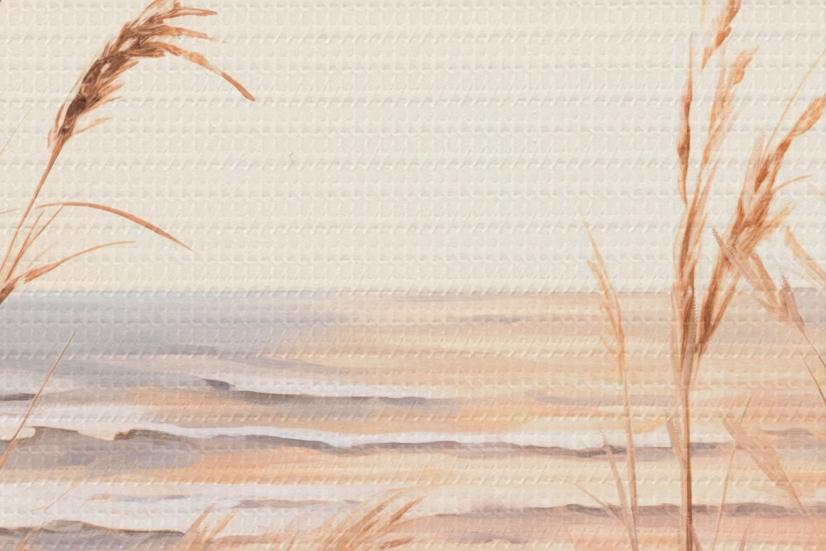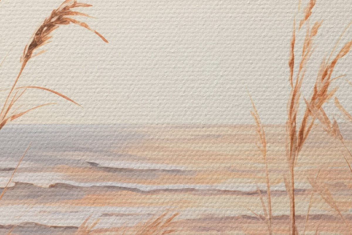 Tableaux rondes Herbe de la pampa avec une palette de couleurs orange pastel, un ciel rose pâle, un paysage paisible r45935