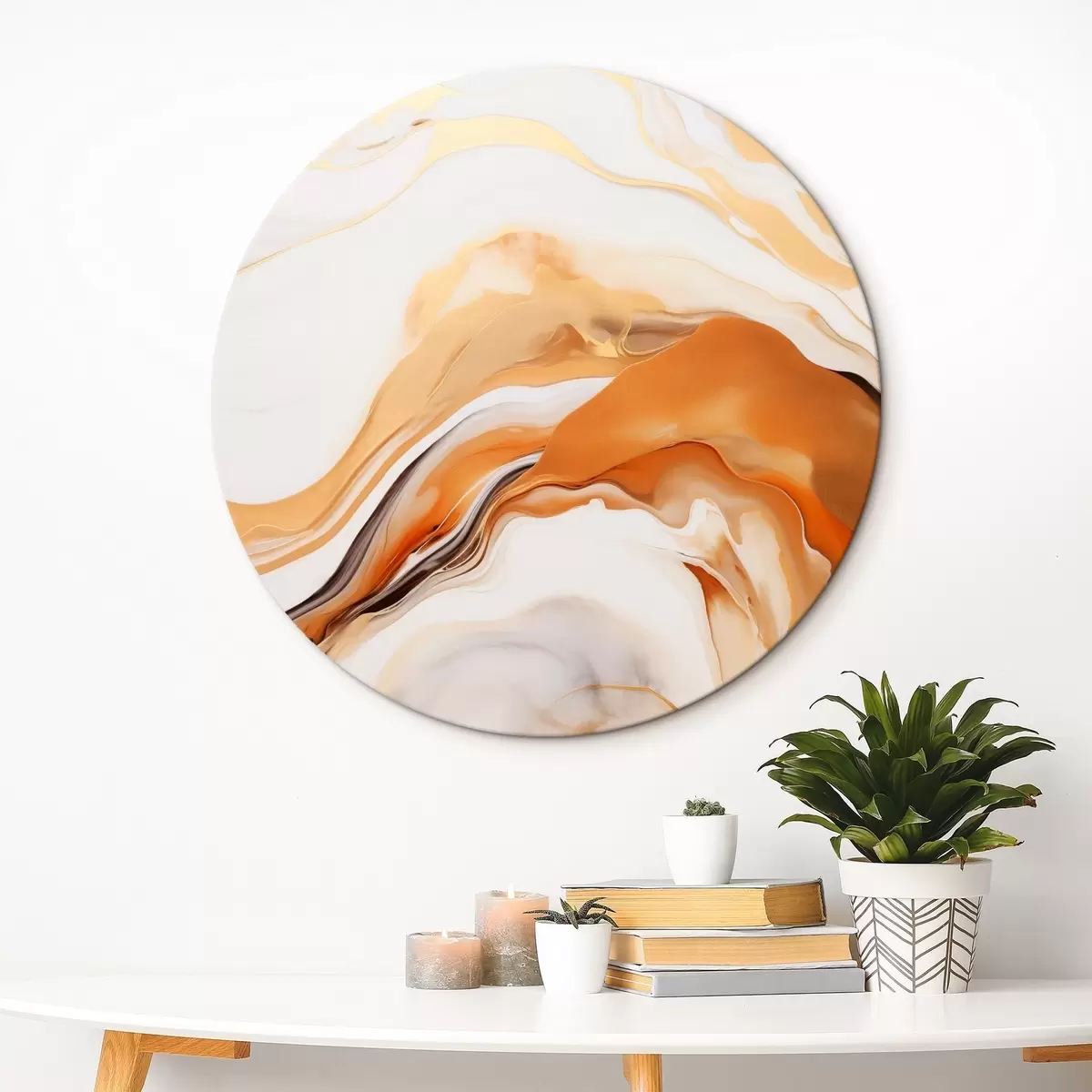 Tableaux rondes Imitation de peinture abstraite avec des formes fluides dans des tons de blanc, orange et marron, minimaliste r45938