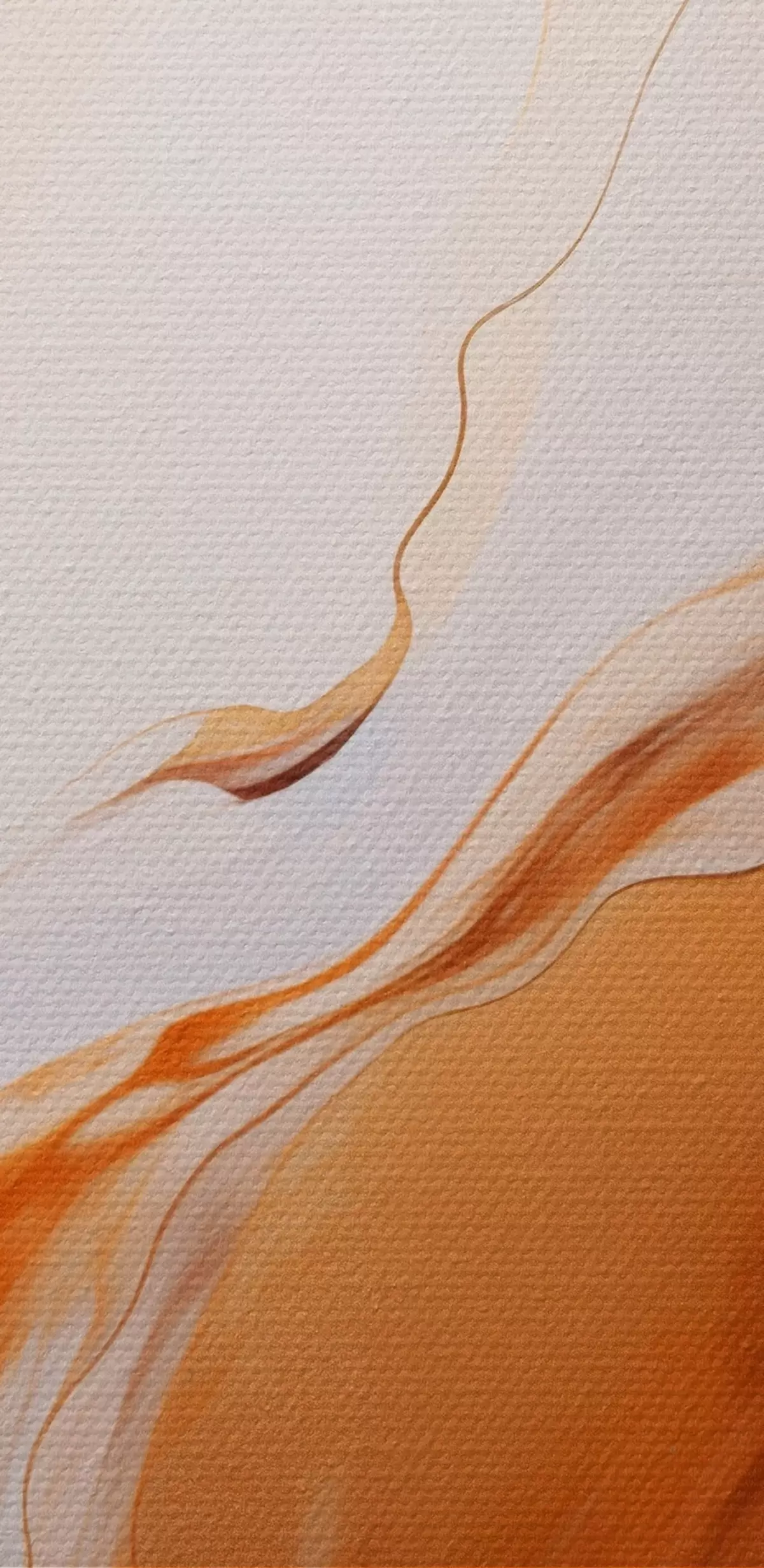 Tableaux rondes Imitation de peinture abstraite avec des couleurs blanches et orange, art fluide avec des lignes ondulées, art moderne r45939