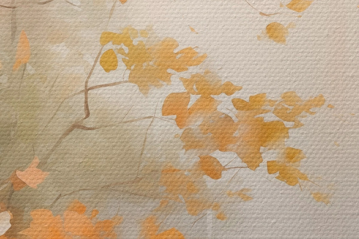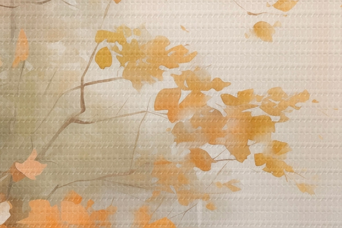 Tableaux rondes Branches d'arbres automnales aux feuilles orange dans une forêt baignée d'une lumière douce Nr r45940