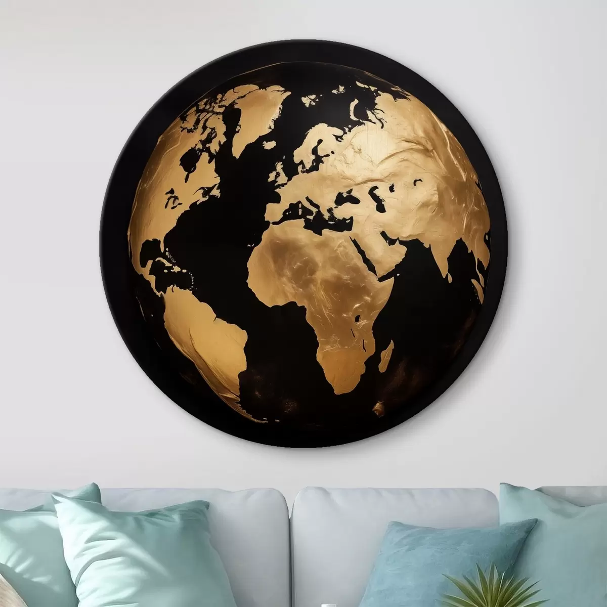 Tableaux rondes Globe terrestre abstrait texturé jaune, planète sur fond noir, art minimaliste moderne r45942