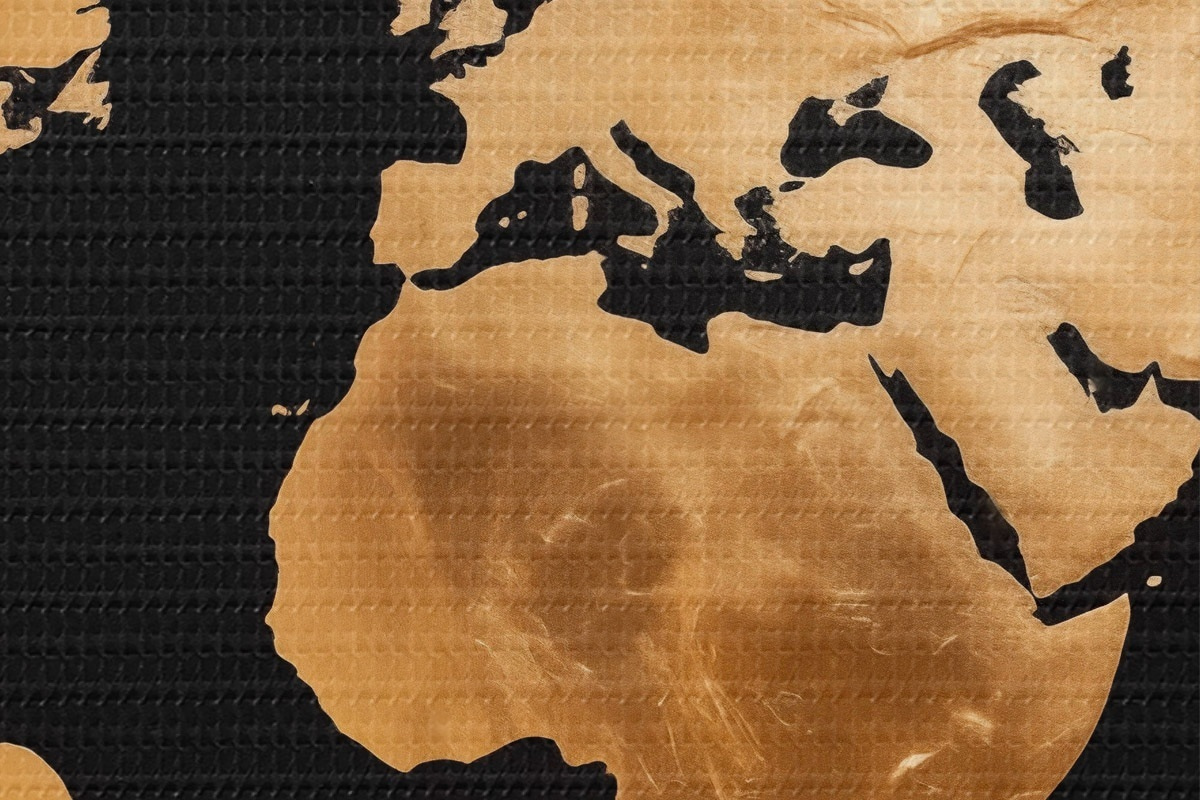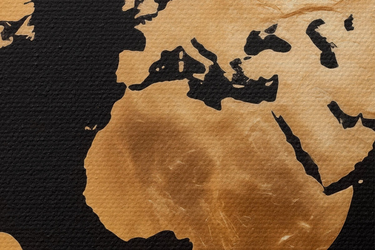 Tableaux rondes Globe terrestre abstrait texturé jaune, planète sur fond noir, art minimaliste moderne Nr r45942