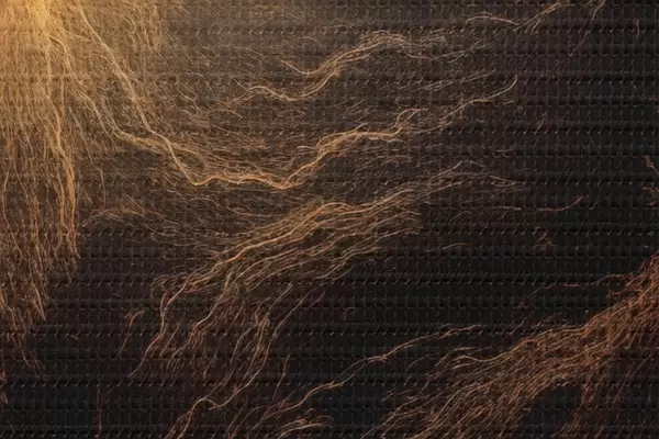 Tableaux rondes Planète abstraite avec des veines orange sur fond noir, art minimaliste moderne r45943