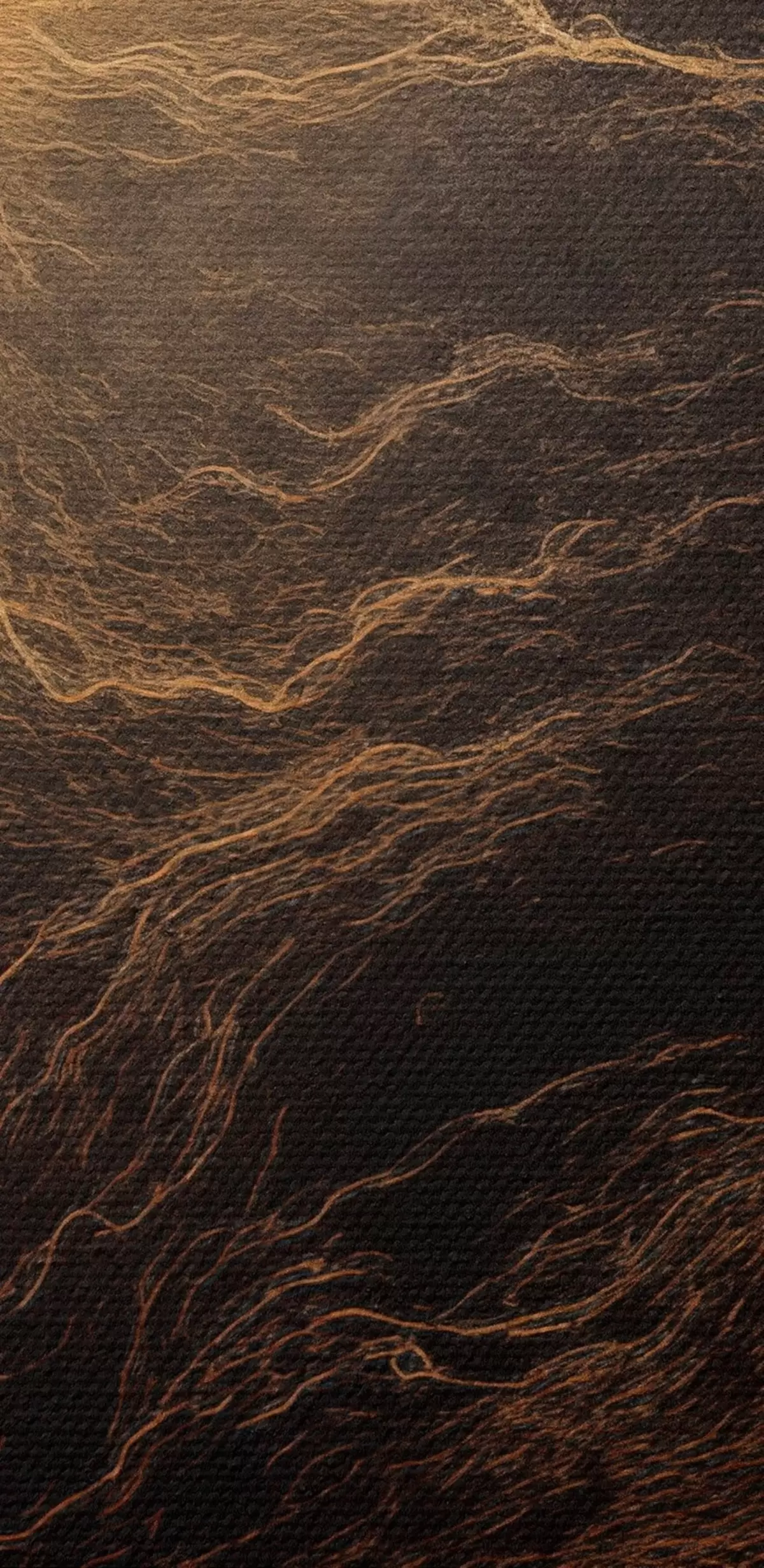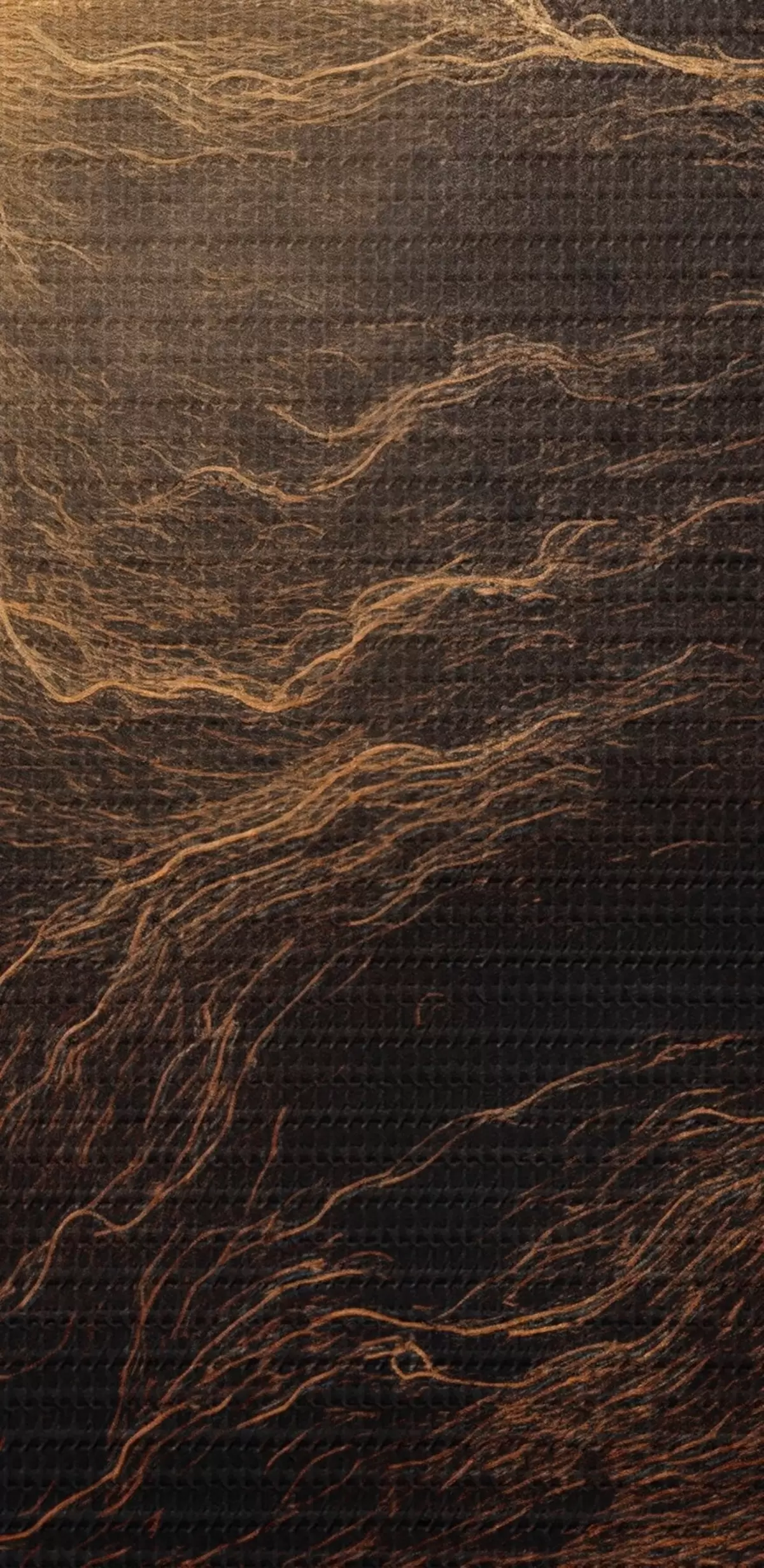 Tableaux rondes Planète abstraite avec des veines orange sur fond noir, art minimaliste moderne r45943