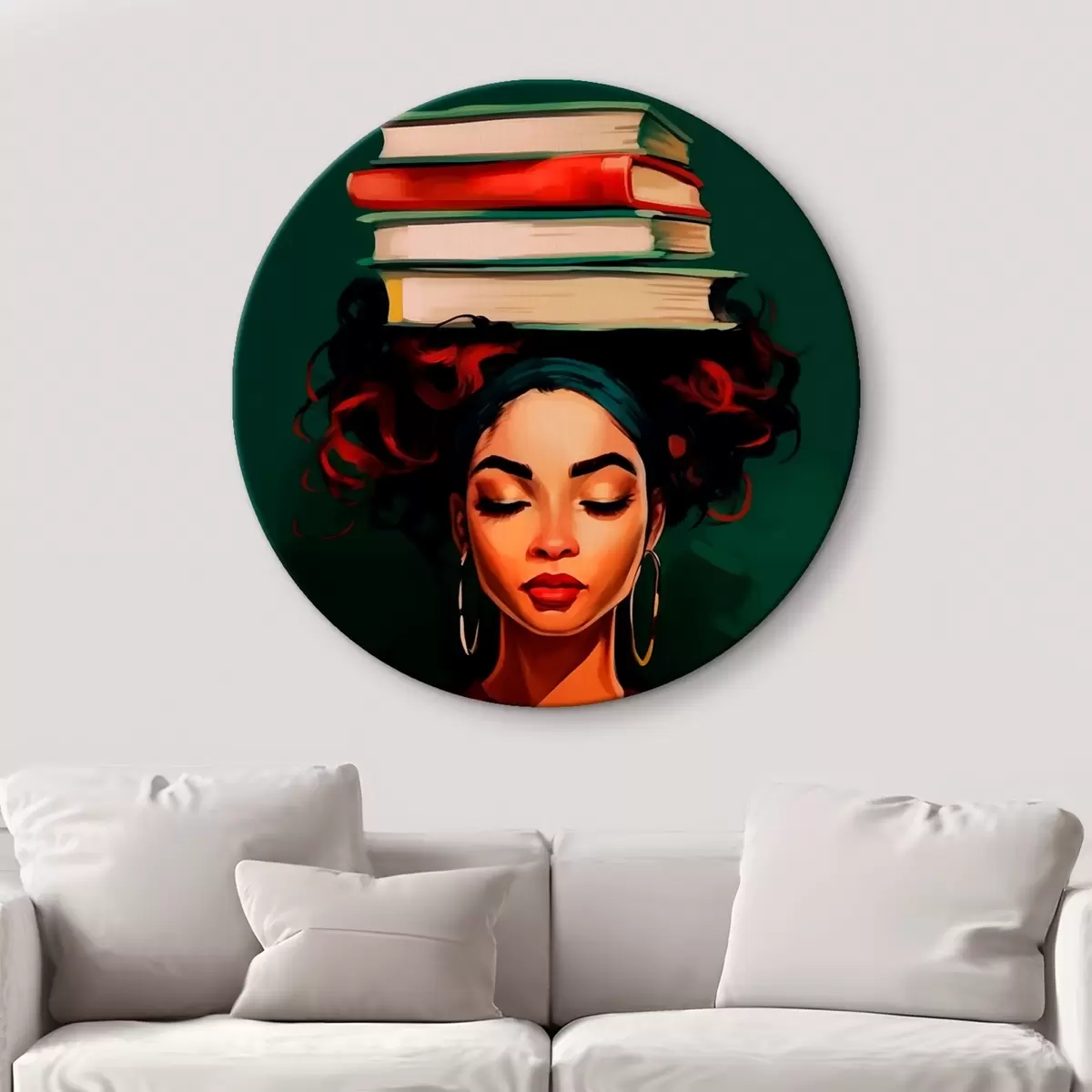 Tableaux rondes Femme avec des livres sur la tête Nr r45952