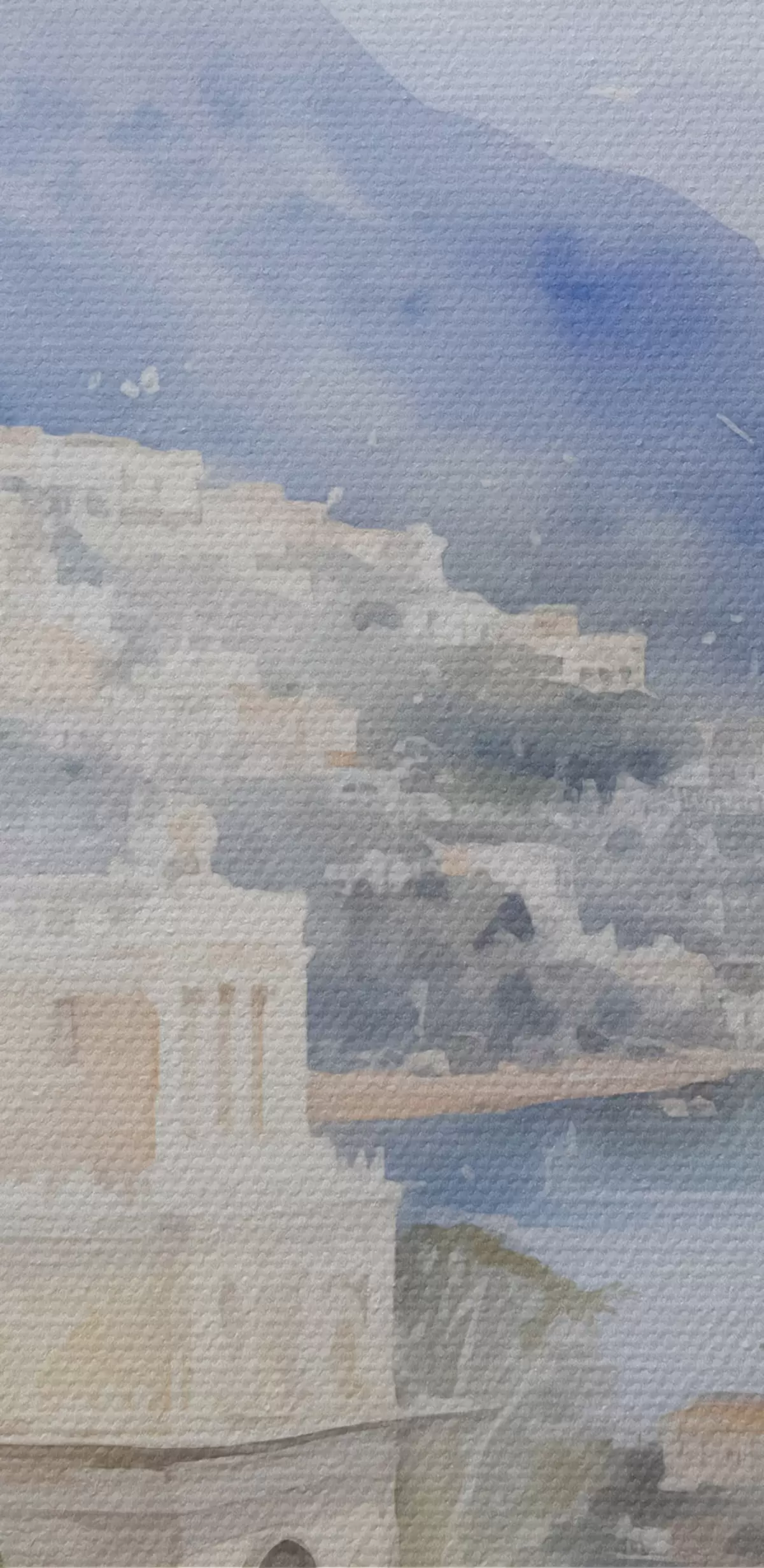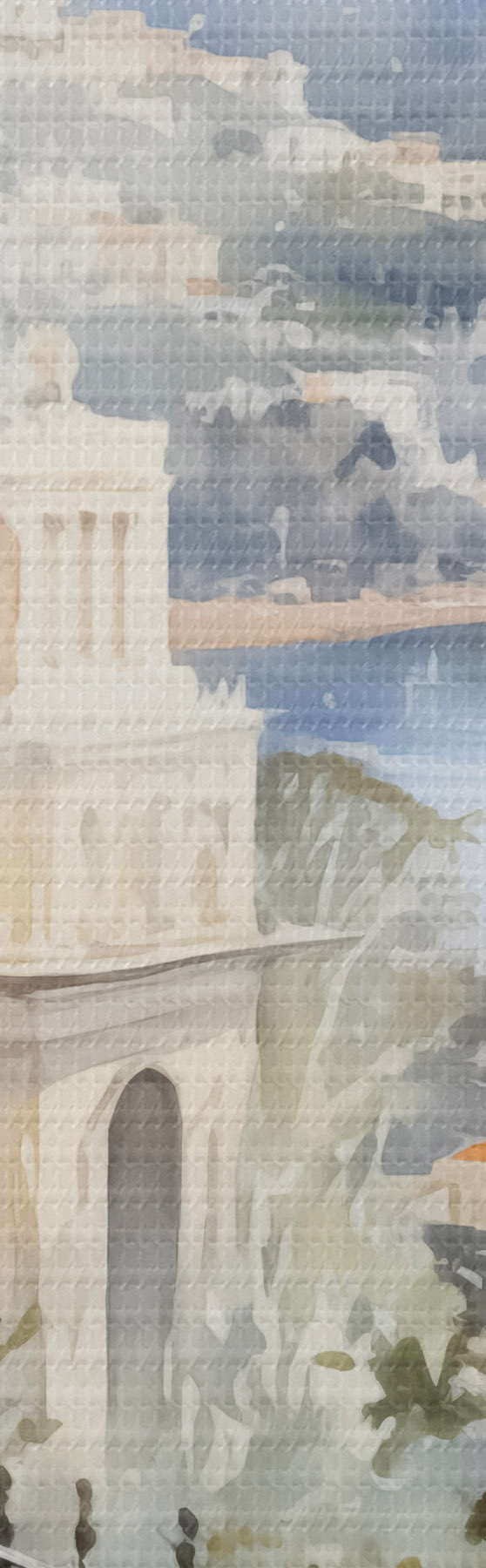 Tableaux rondes Baie près de la ville imitation aquarelle r45979