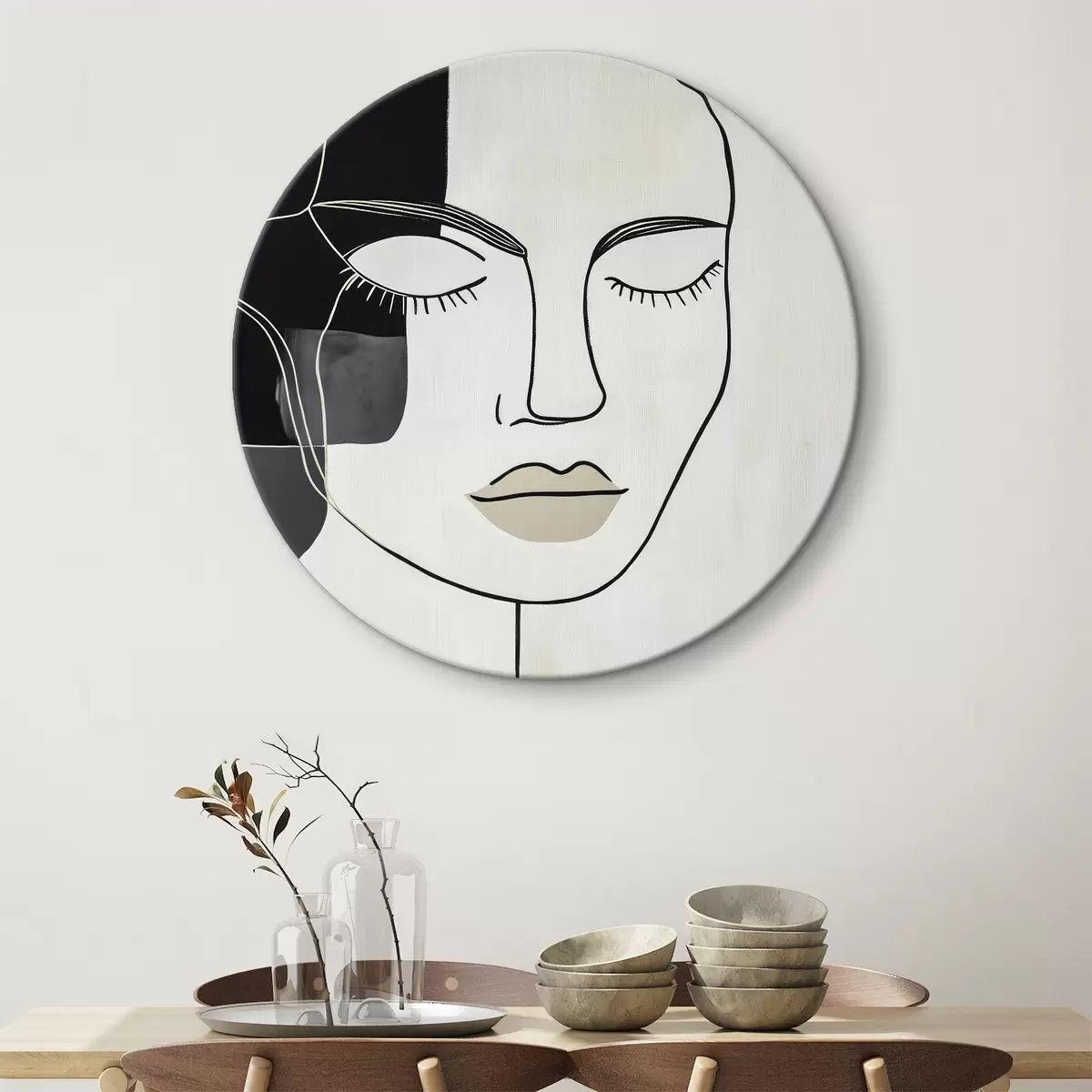 Tableaux rondes Portrait abstrait minimaliste Nr r45987