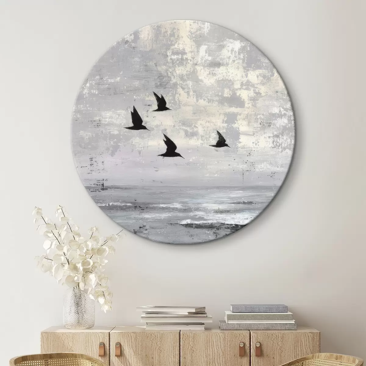 Tableaux rondes Paysage abstrait avec des oiseaux Nr r45988