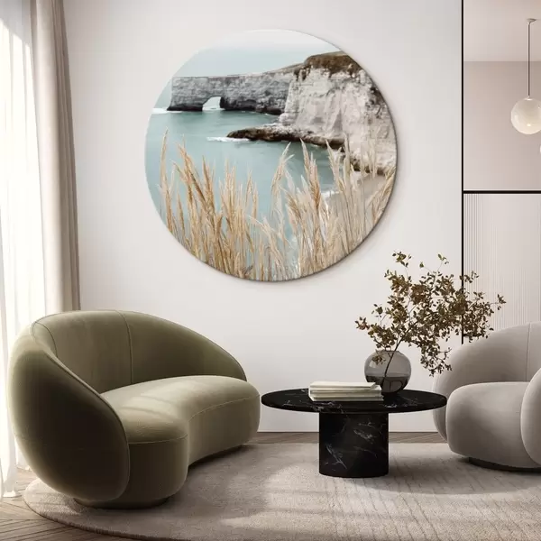 Tableaux rondes Falaises côtières avec des roseaux au premier plan r46141