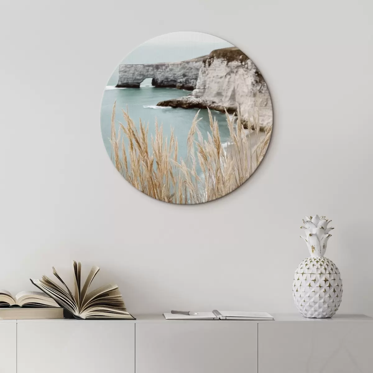 Tableaux rondes Falaises côtières avec des roseaux au premier plan r46141