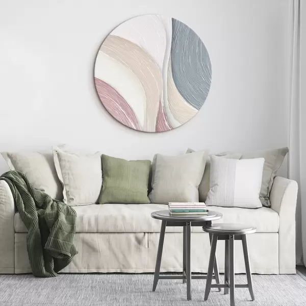 Tableaux rondes Légères vagues abstraites dans des tons rose pâle et gris-blanc r46153