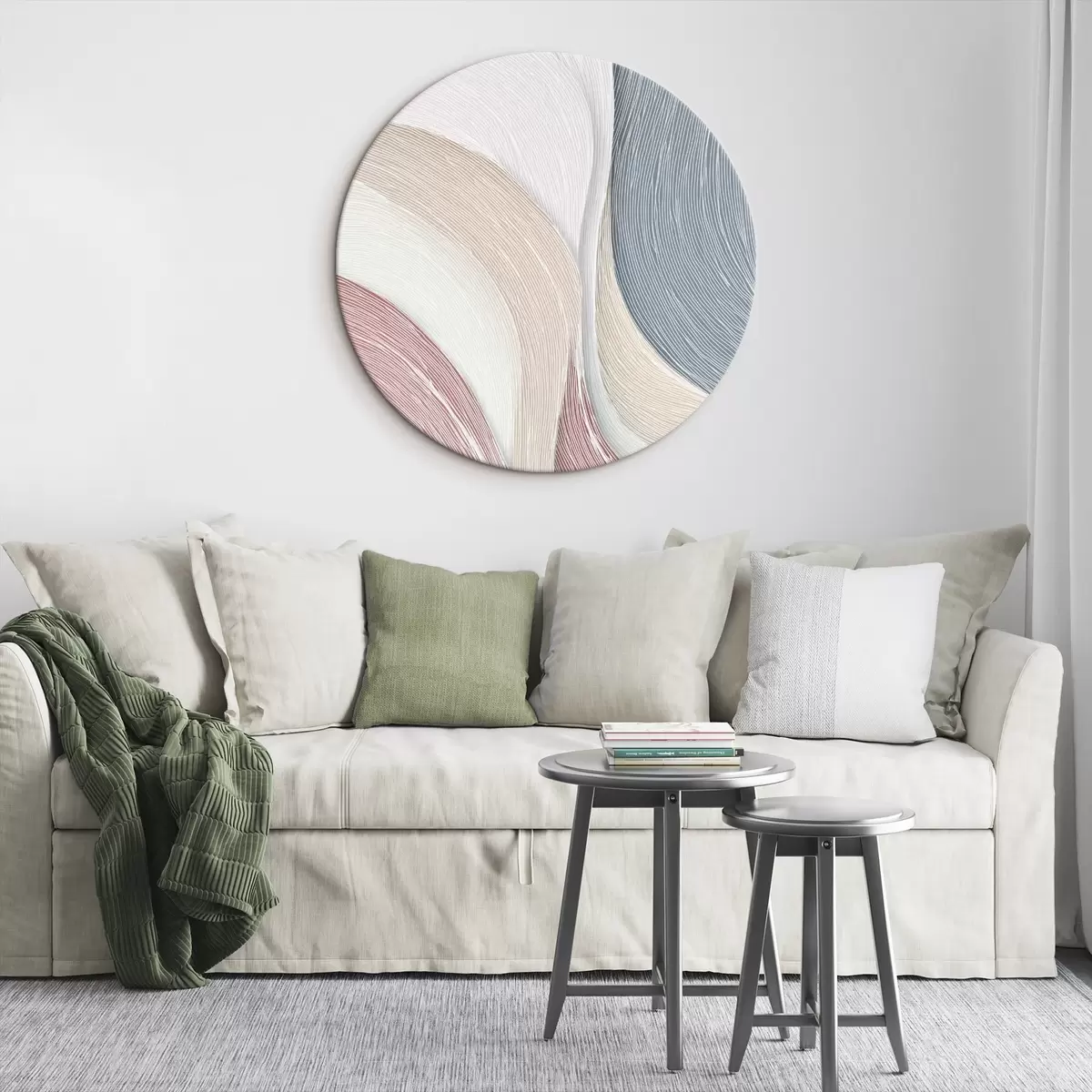 Tableaux rondes Légères vagues abstraites dans des tons rose pâle et gris-blanc Nr r46153
