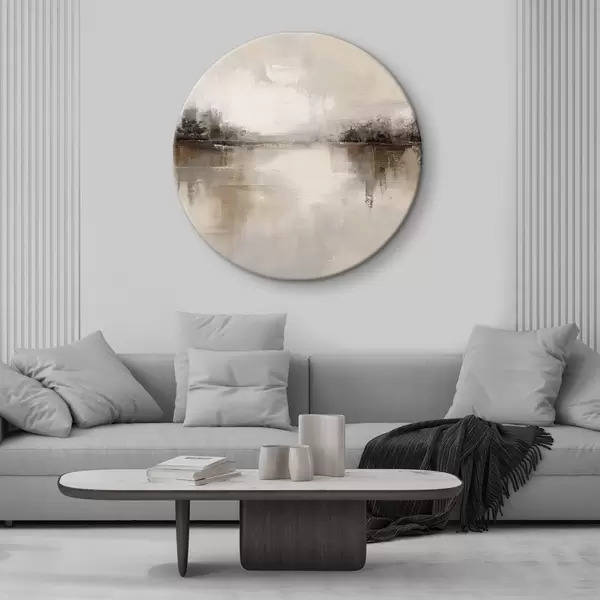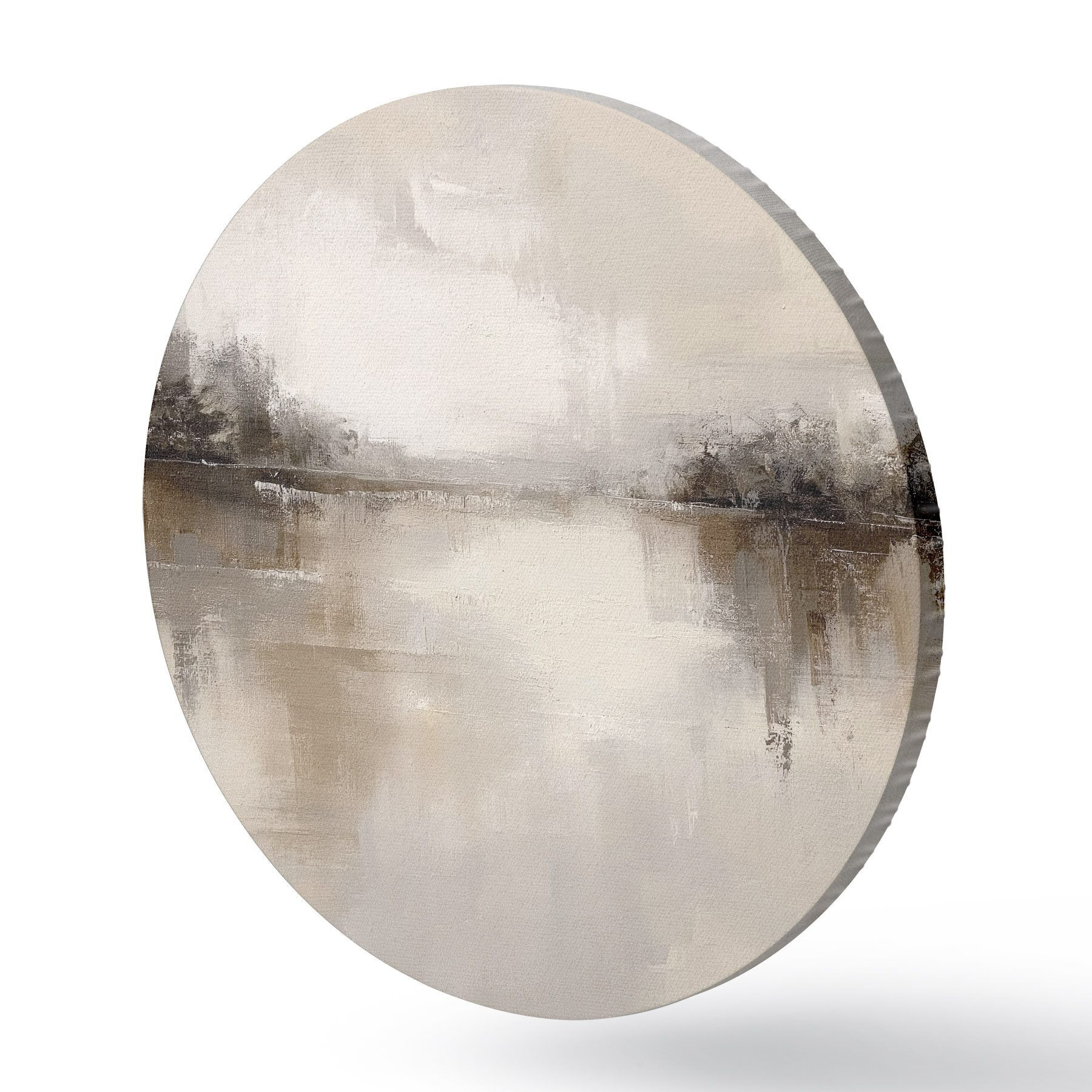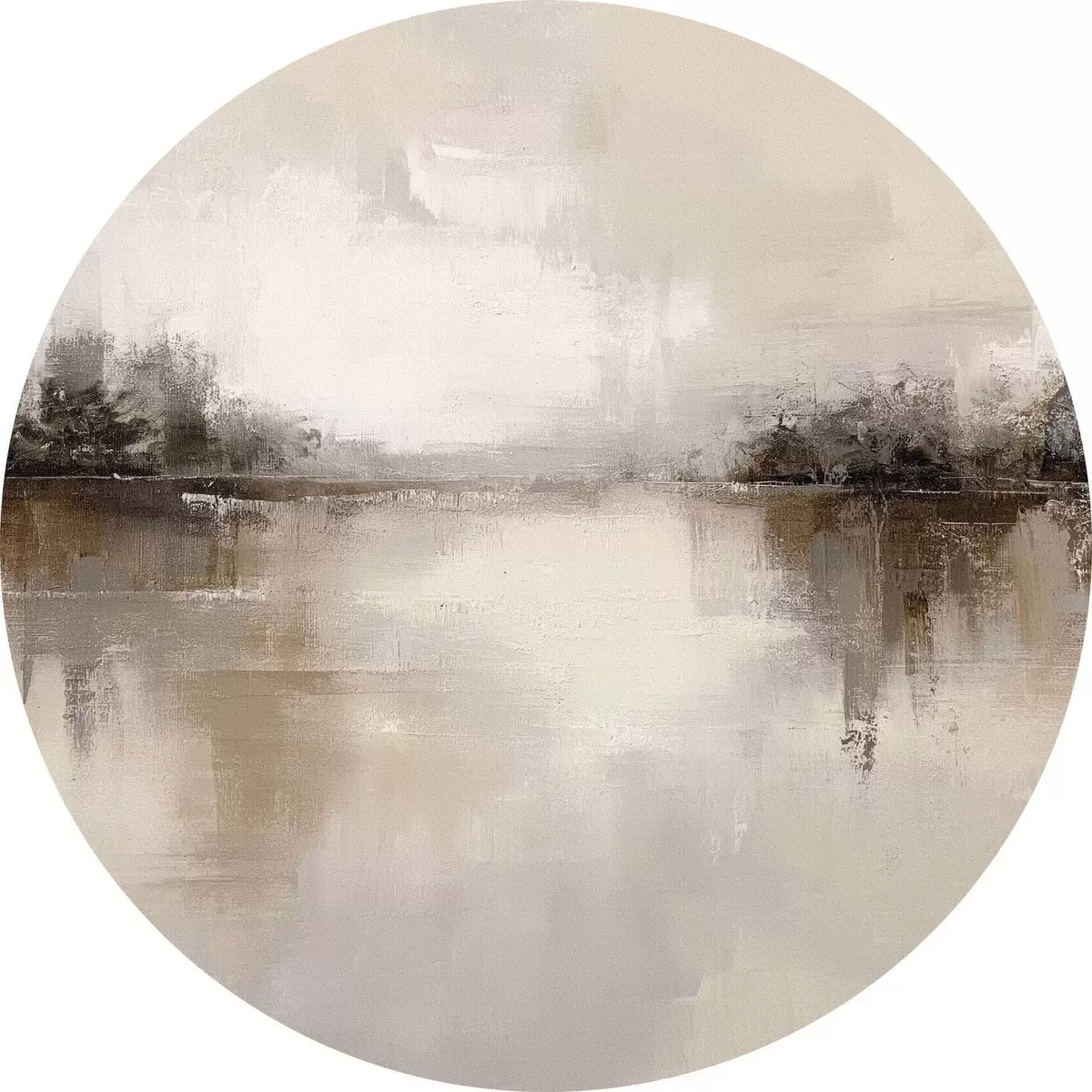 Tableaux rondes Paysage doux avec un lac dans des tons chauds beige-gris Nr r46158
