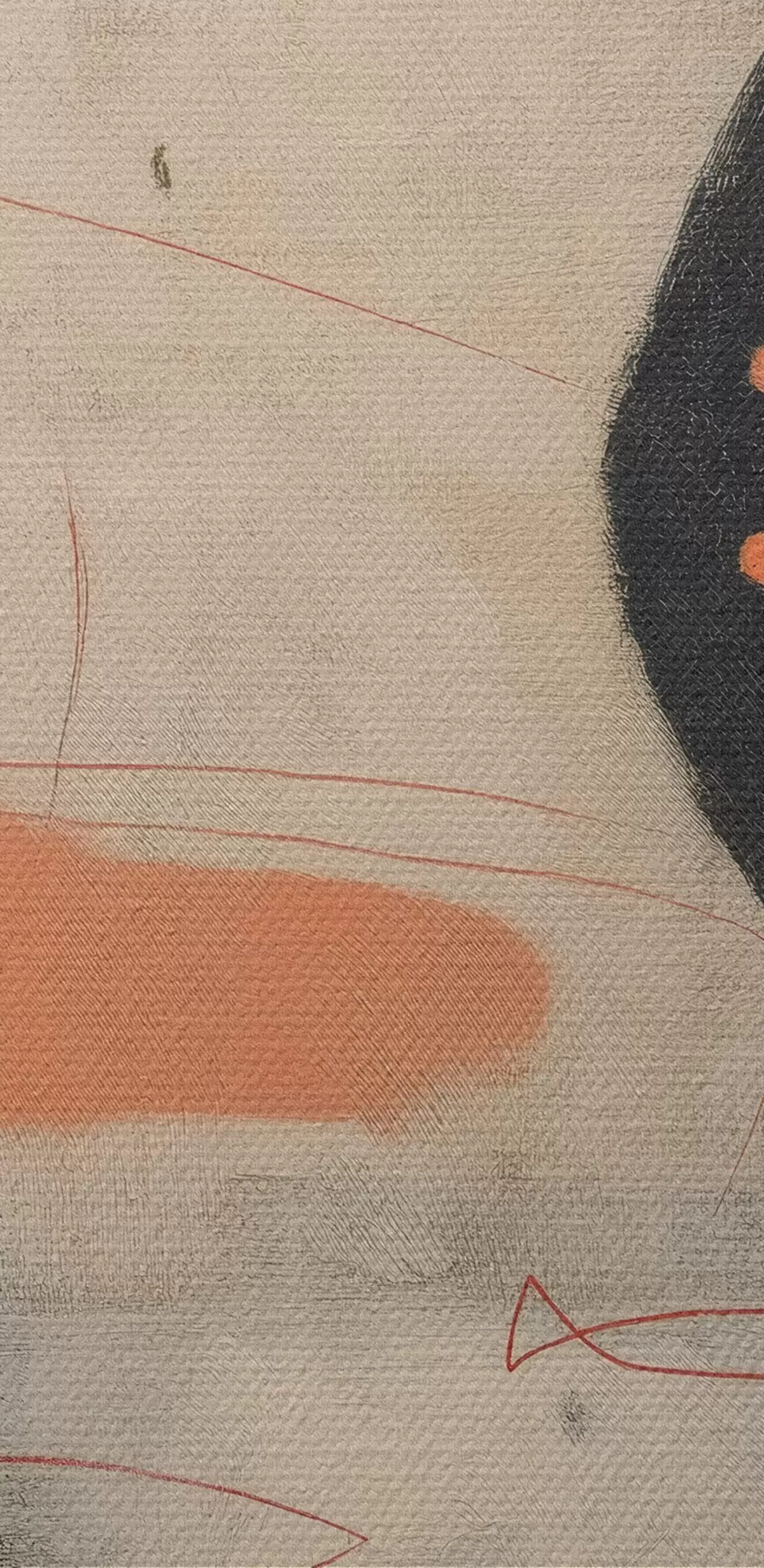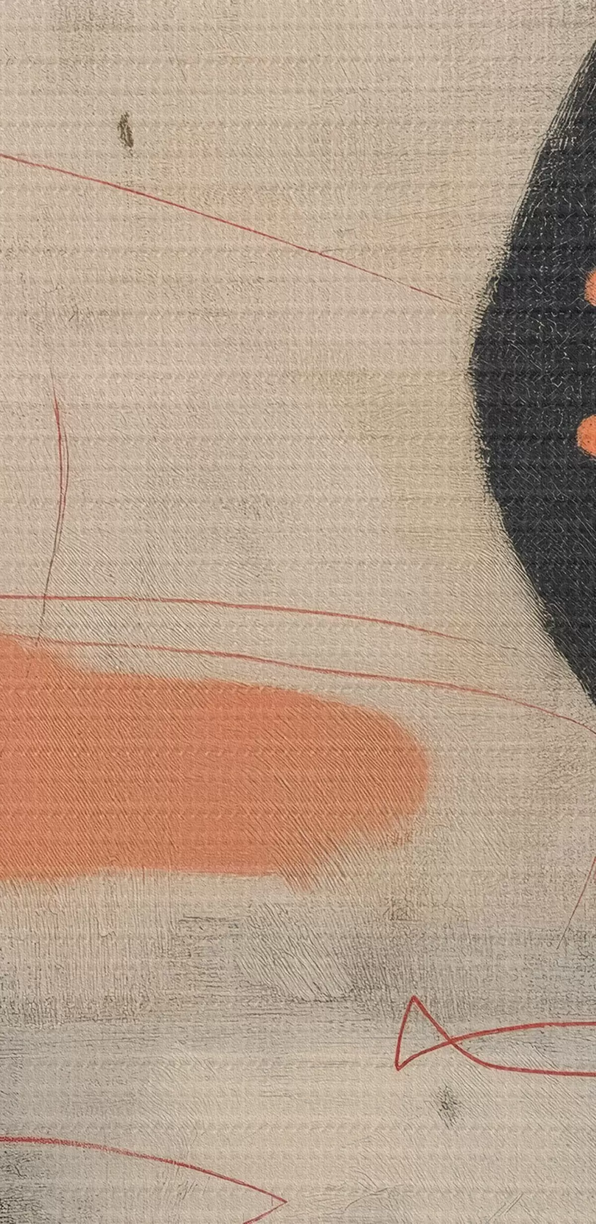 Tableaux rondes Dessin abstrait minimaliste avec des accents noirs et corail Nr r46159