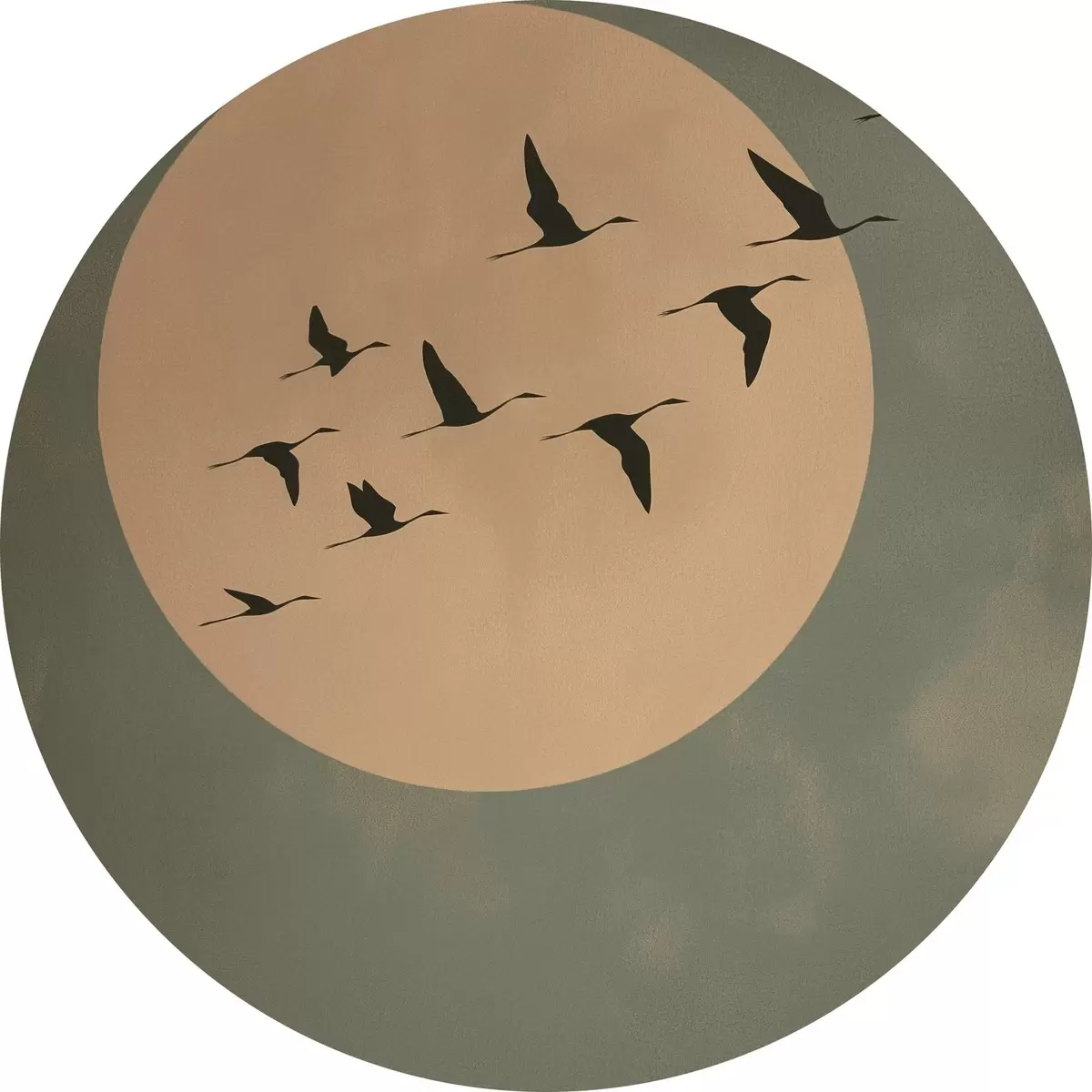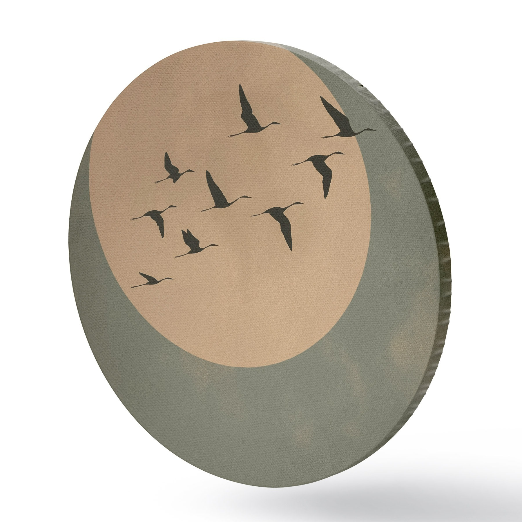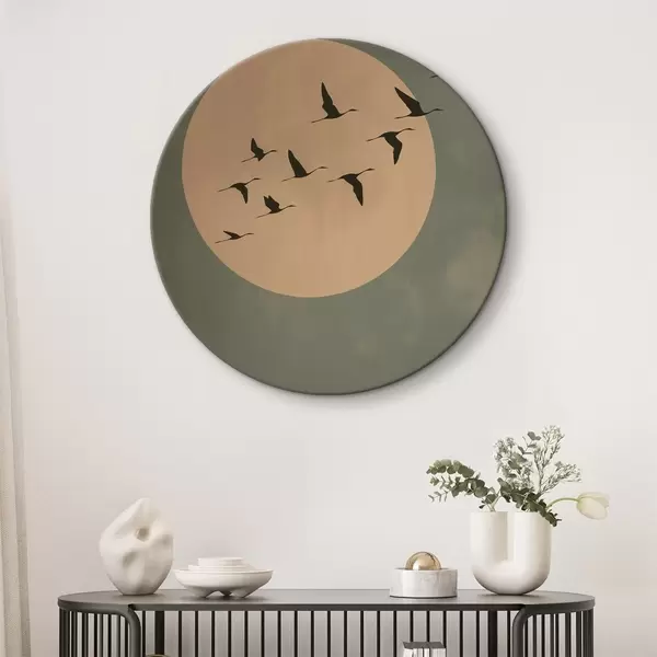 Tableaux rondes Une volée d'oiseaux volant devant une grande lune chaude Nr r46162