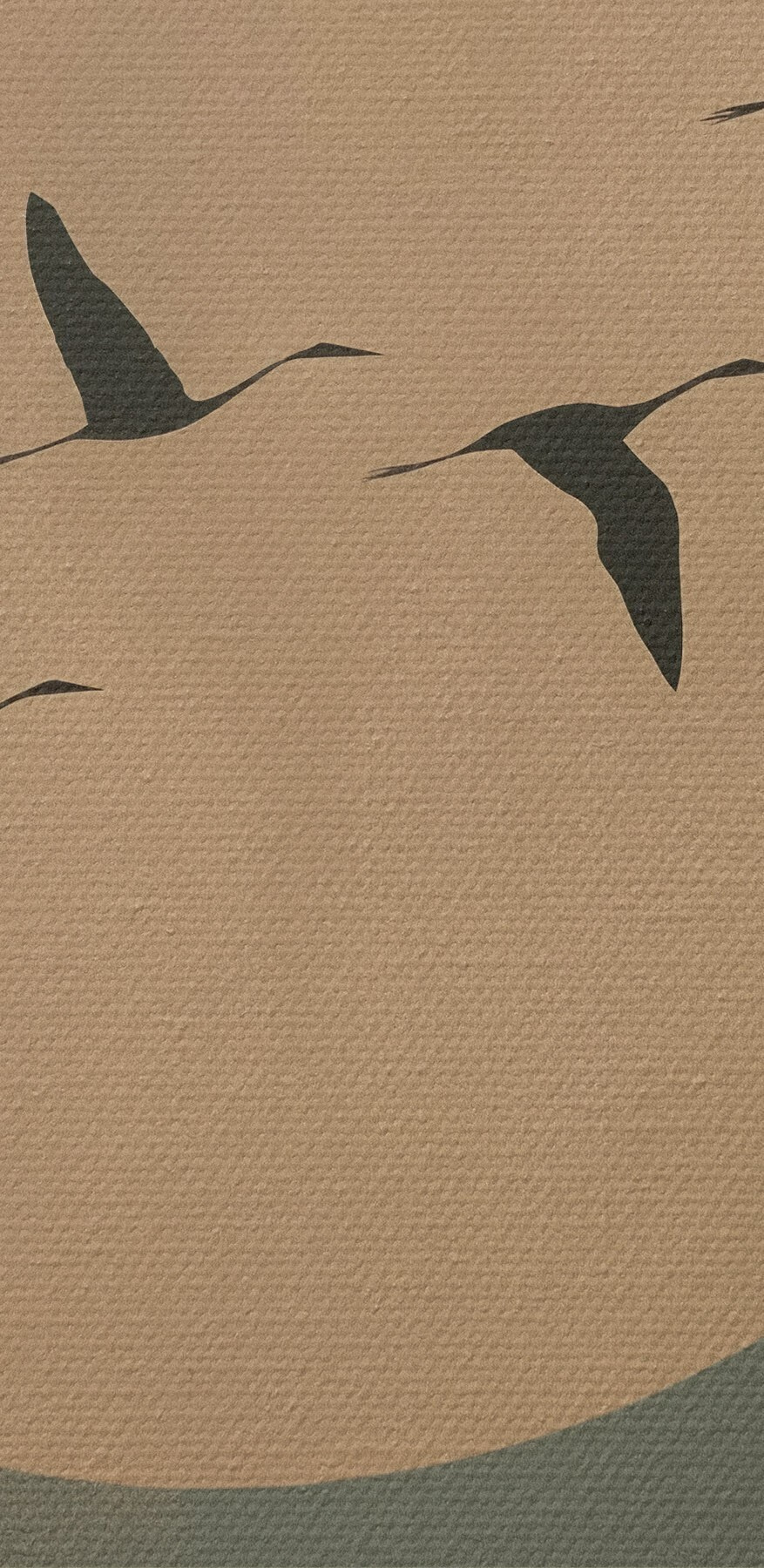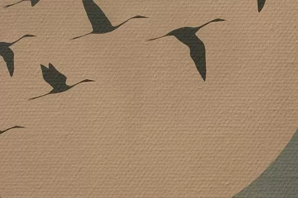 Tableaux rondes Une volée d'oiseaux volant devant une grande lune chaude r46162