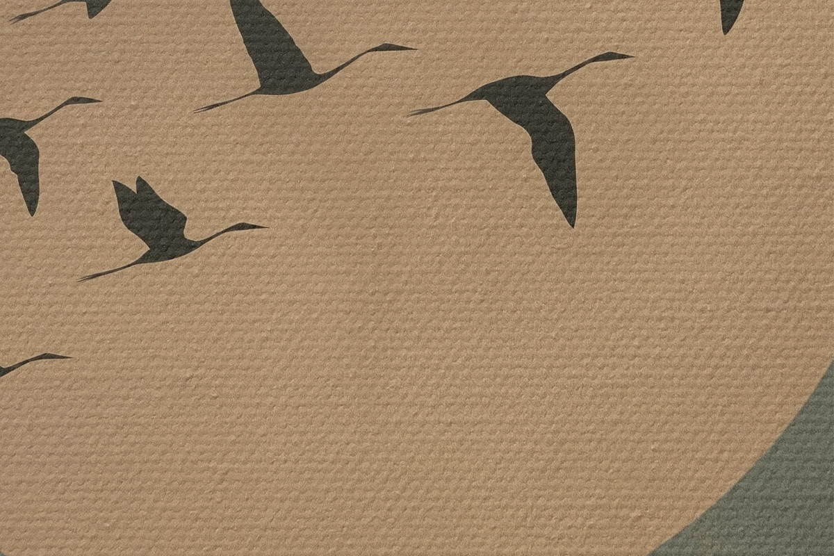 Tableaux rondes Une volée d'oiseaux volant devant une grande lune chaude Nr r46162