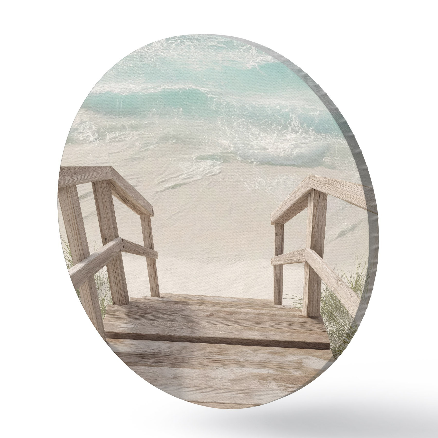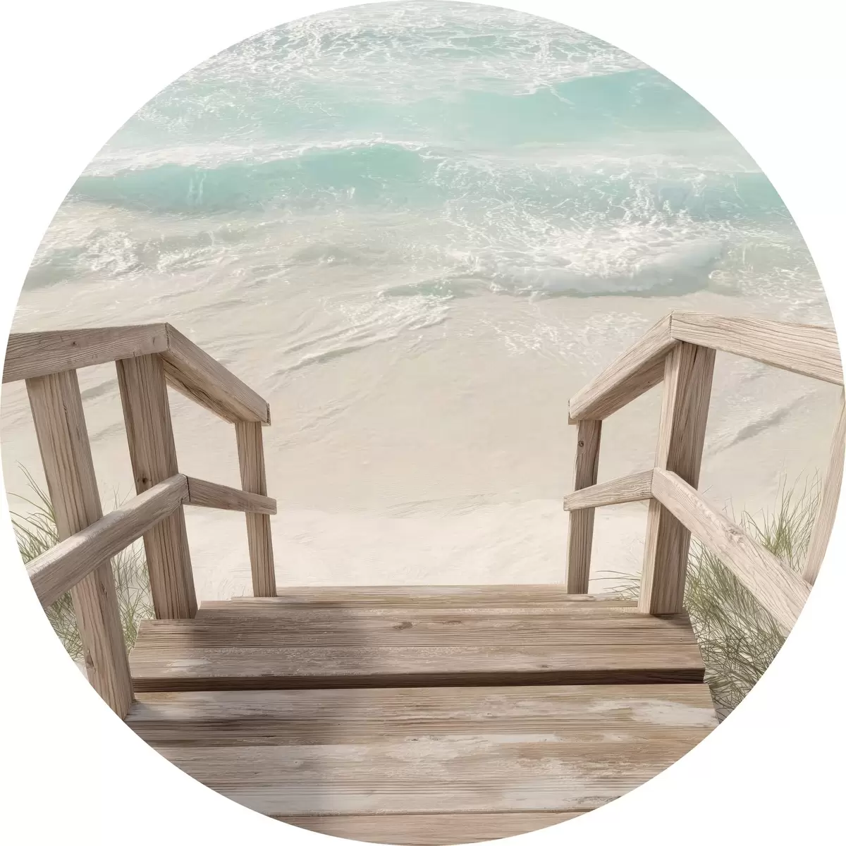 Tableaux rondes Escalier en bois menant à une plage turquoise Nr r46163
