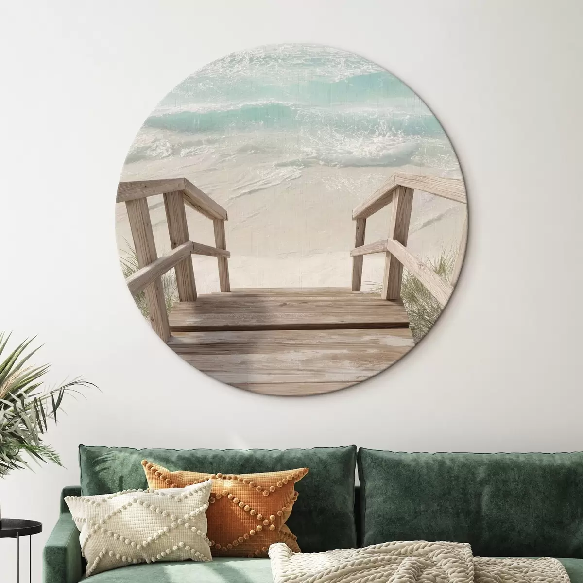 Tableaux rondes Escalier en bois menant à une plage turquoise Nr r46163