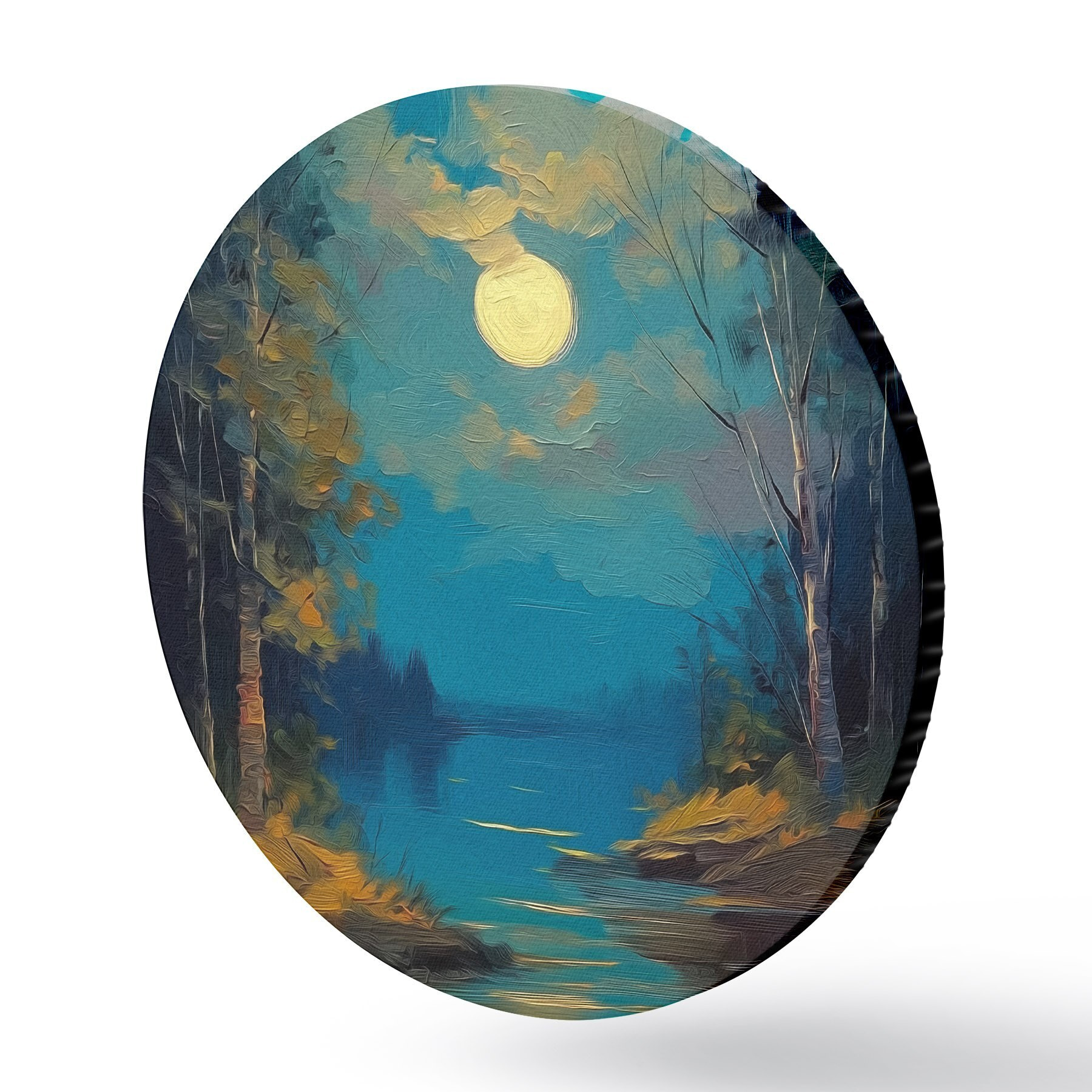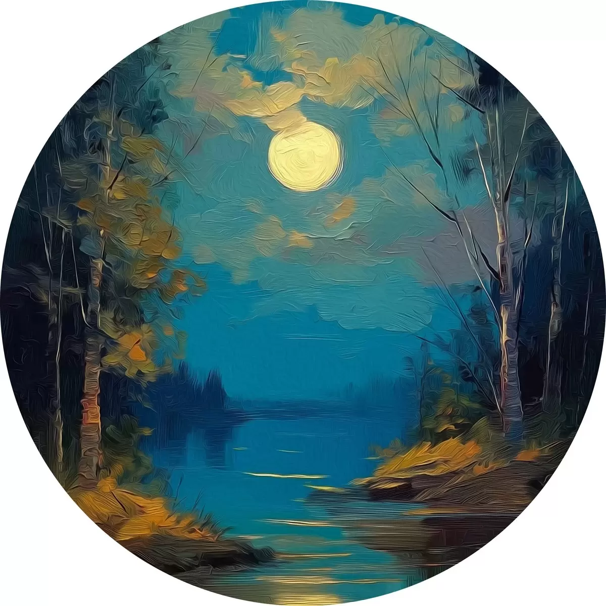 Tableaux rondes Clair de lune sur une rivière calme au milieu des pins r46164