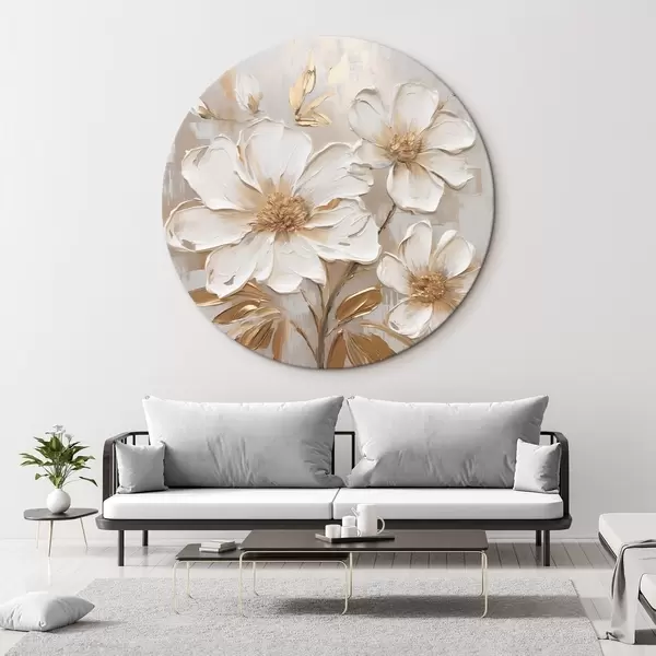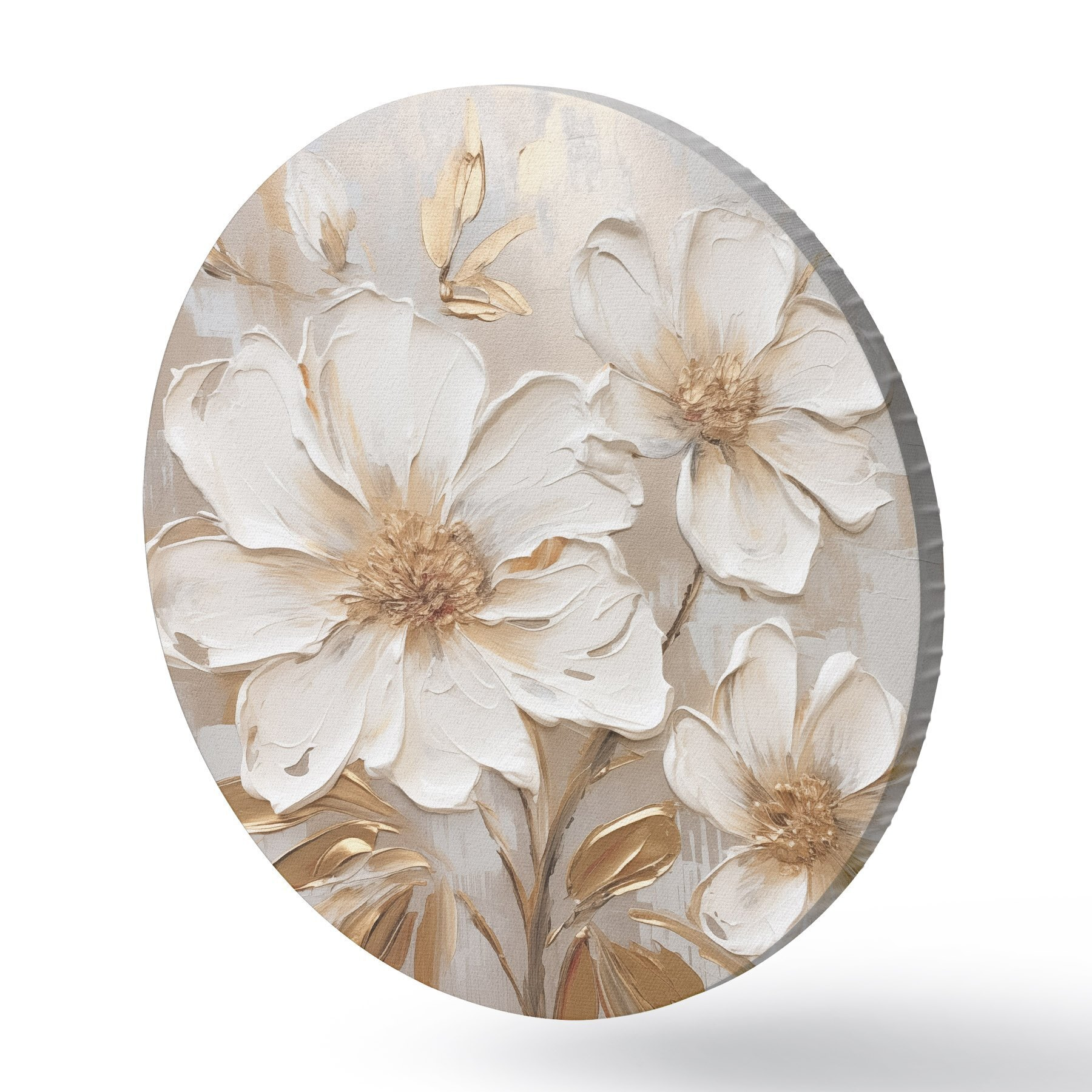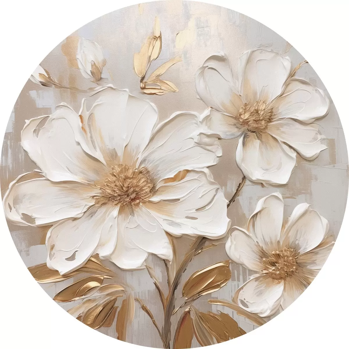 Tableaux rondes Fleurs texturées sur fond clair aux nuances chaudes Nr r46166