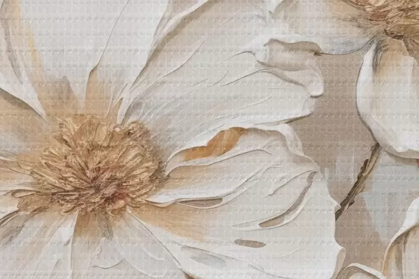 Tableaux rondes Fleurs texturées sur fond clair aux nuances chaudes r46166