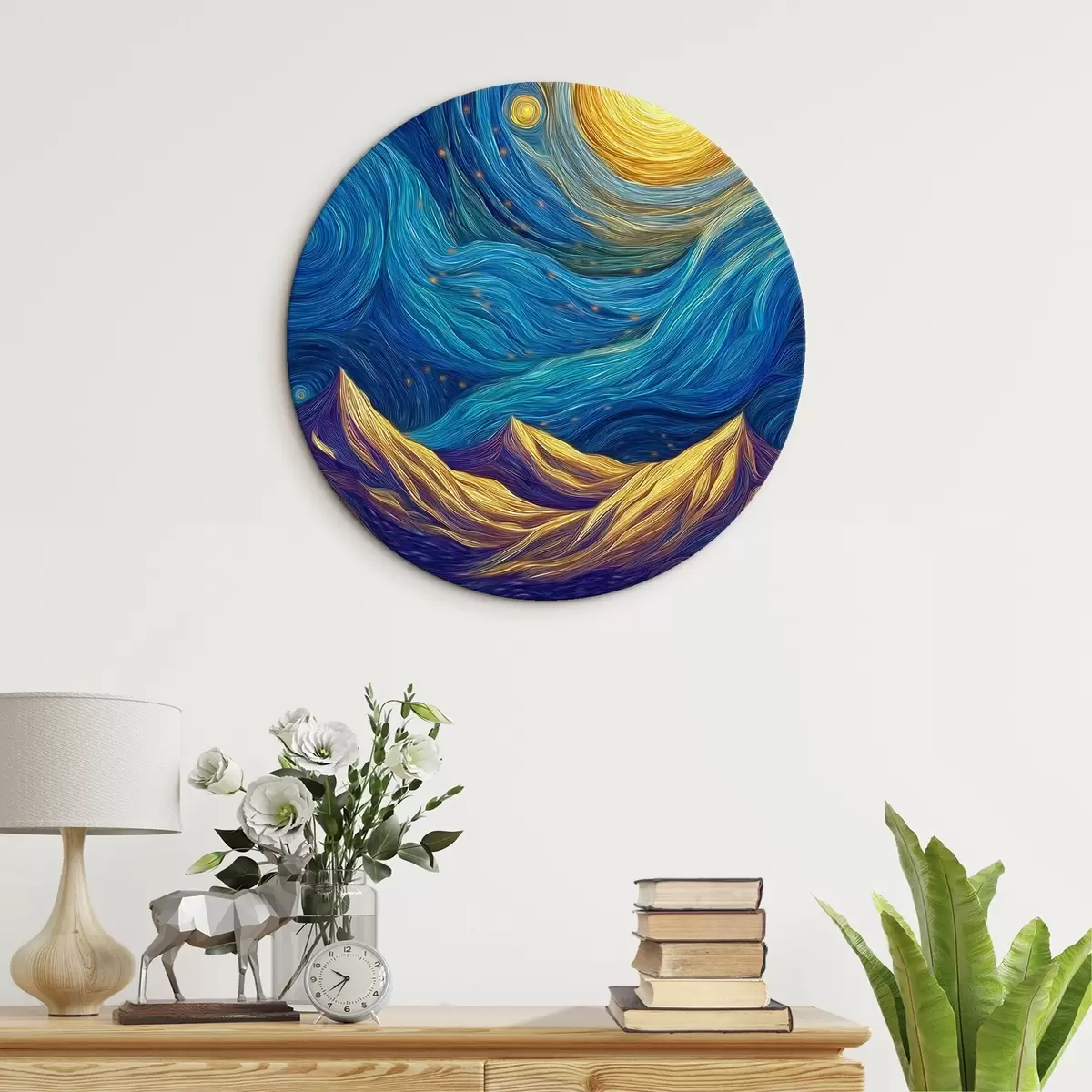 Tableaux rondes Ciel étoilé lumineux au-dessus des sommets montagneux Nr r46168