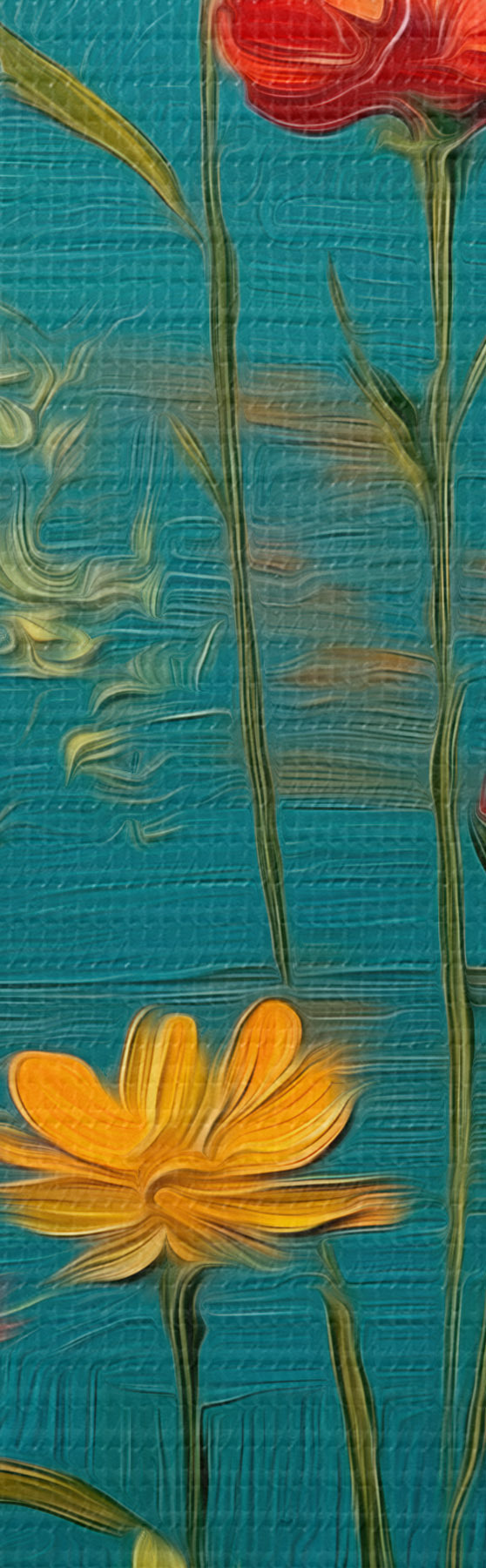 Tableaux rondes Fleurs sauvages sur fond turquoise foncé r46169