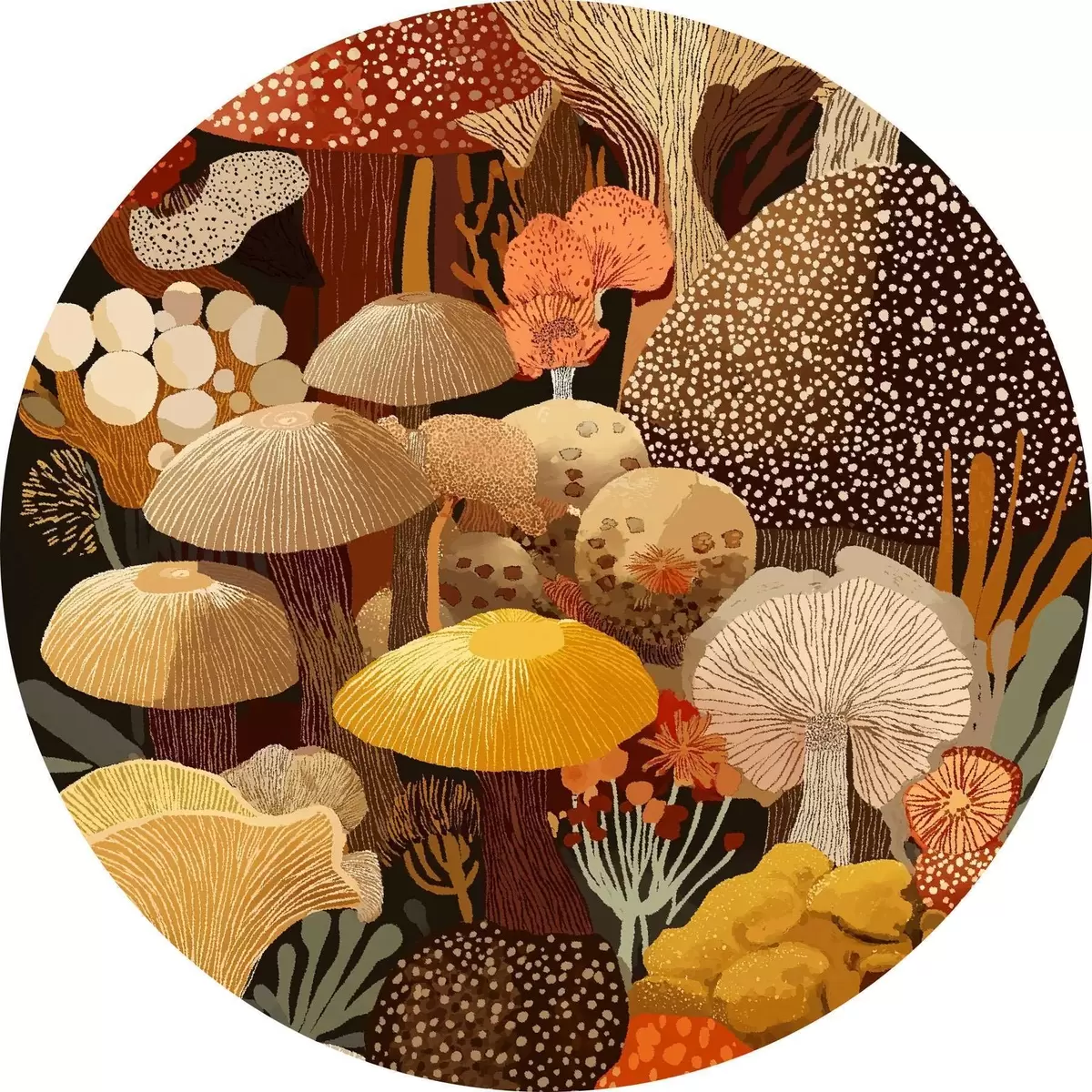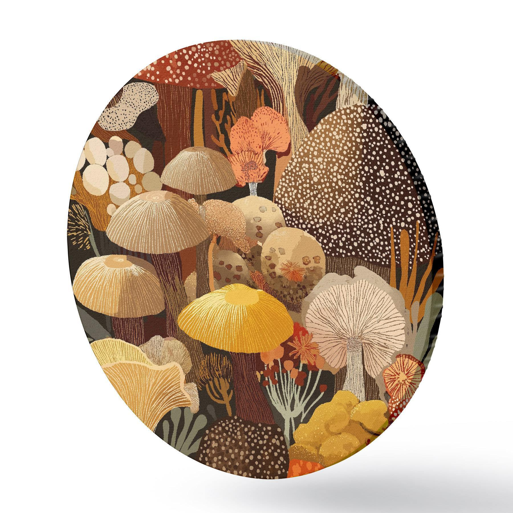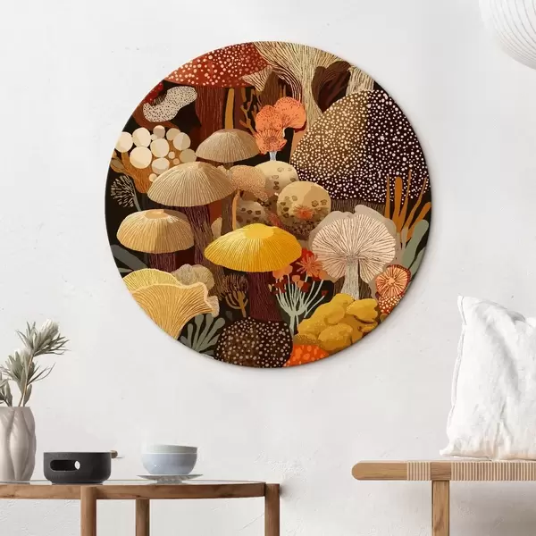 Tableaux rondes Composition de divers champignons forestiers dans des tons chauds r46170