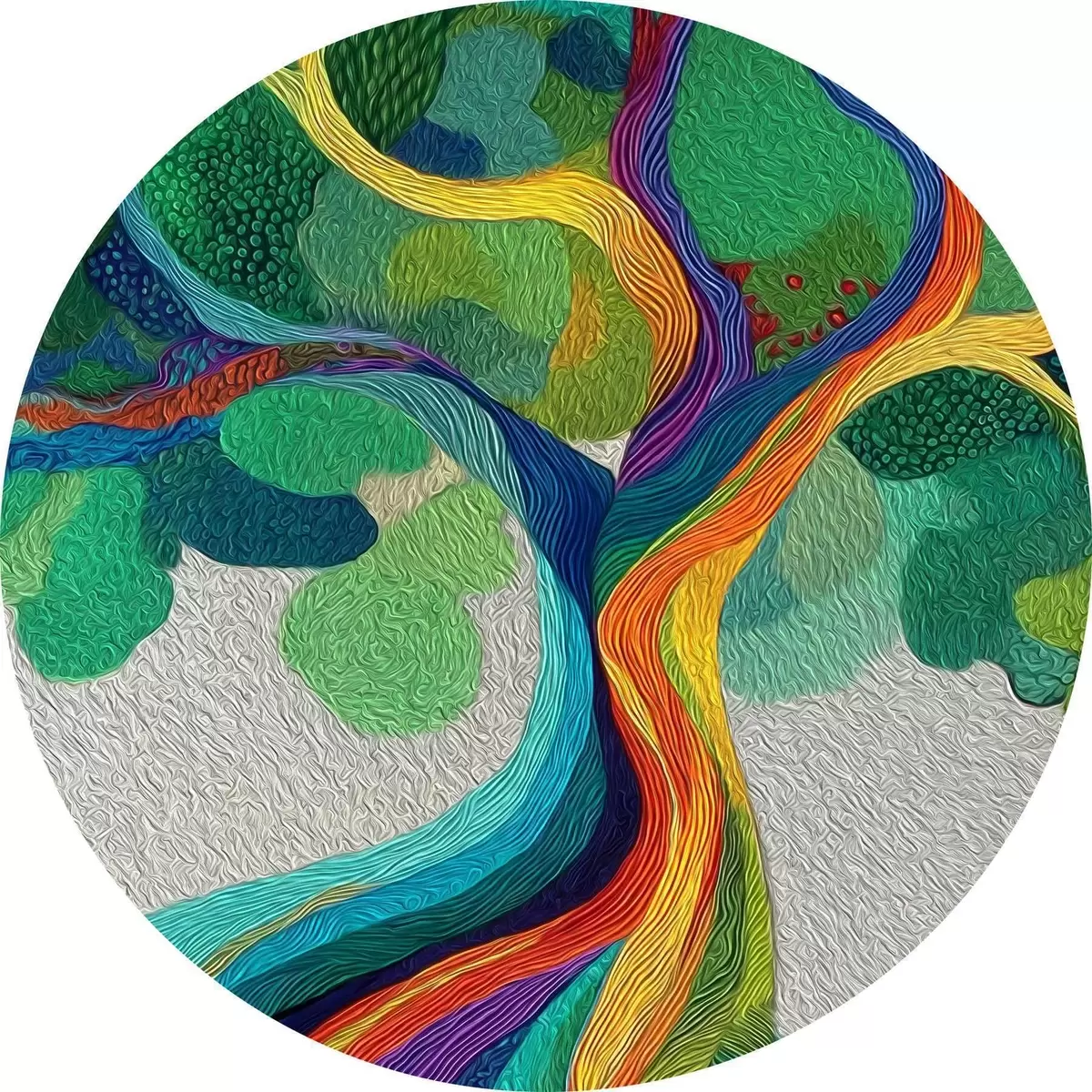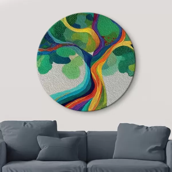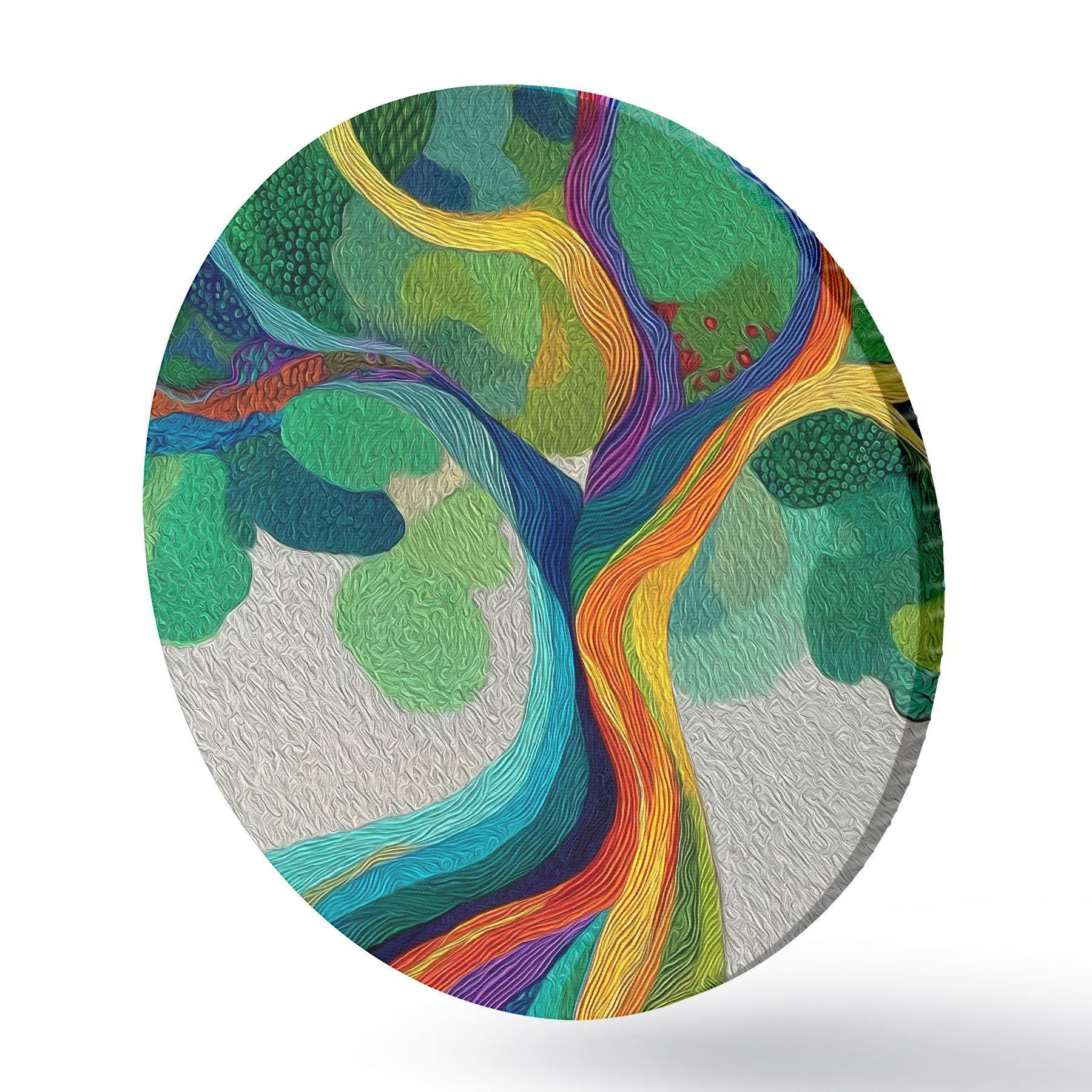Tableaux rondes Arbre aux branches arc-en-ciel sur fond vert Nr r46173