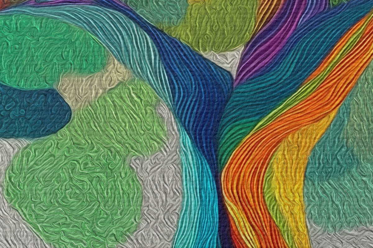 Tableaux rondes Arbre aux branches arc-en-ciel sur fond vert r46173
