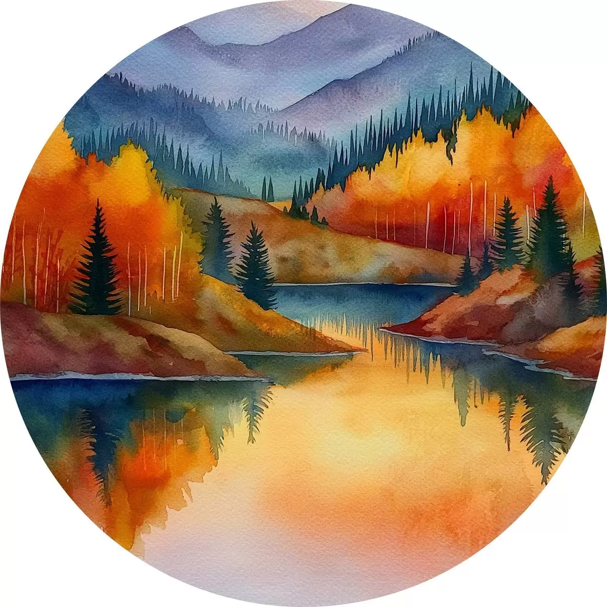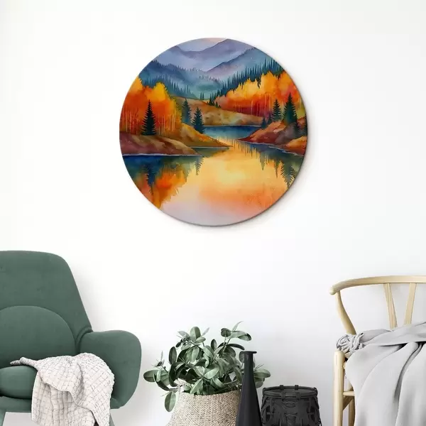 Tableaux rondes Paysage automnal avec des montagnes se reflétant dans un lac calme Nr r46174