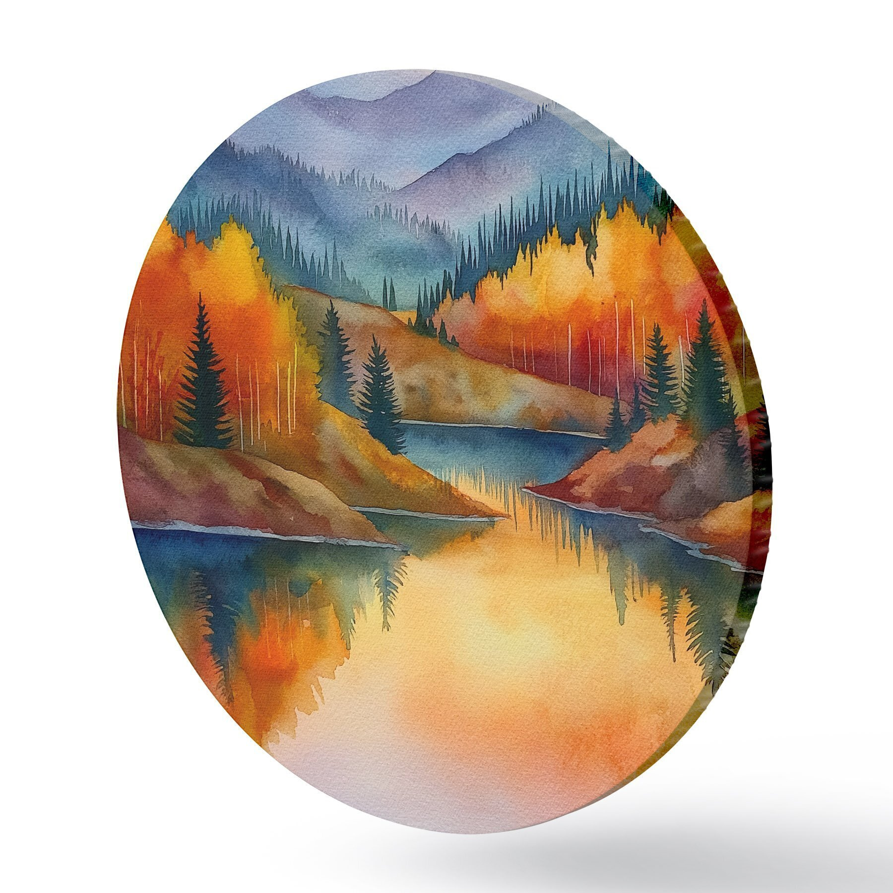 Tableaux rondes Paysage automnal avec des montagnes se reflétant dans un lac calme r46174