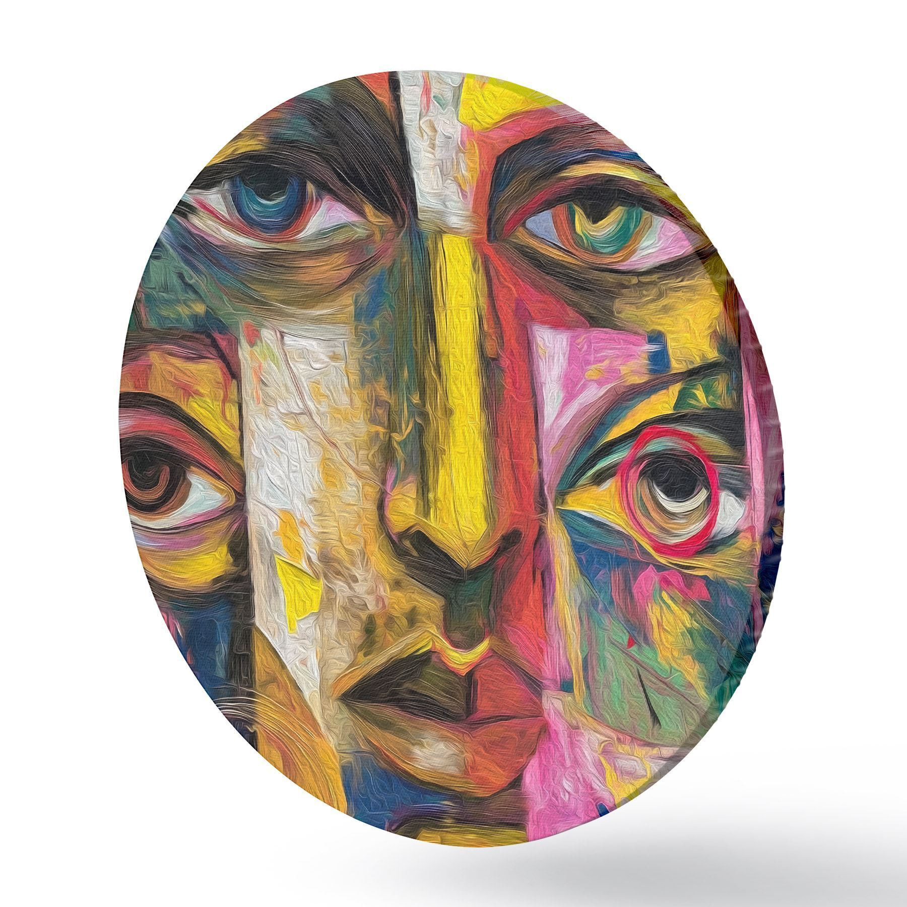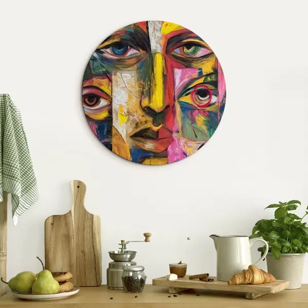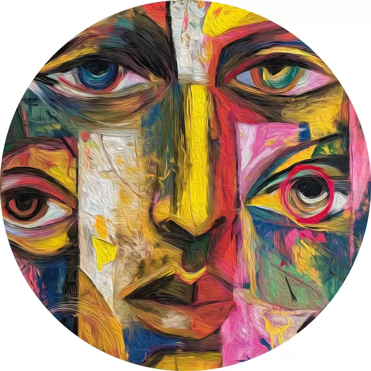 Tableaux rondes Visage abstrait avec des formes géométriques lumineuses Nr r46175