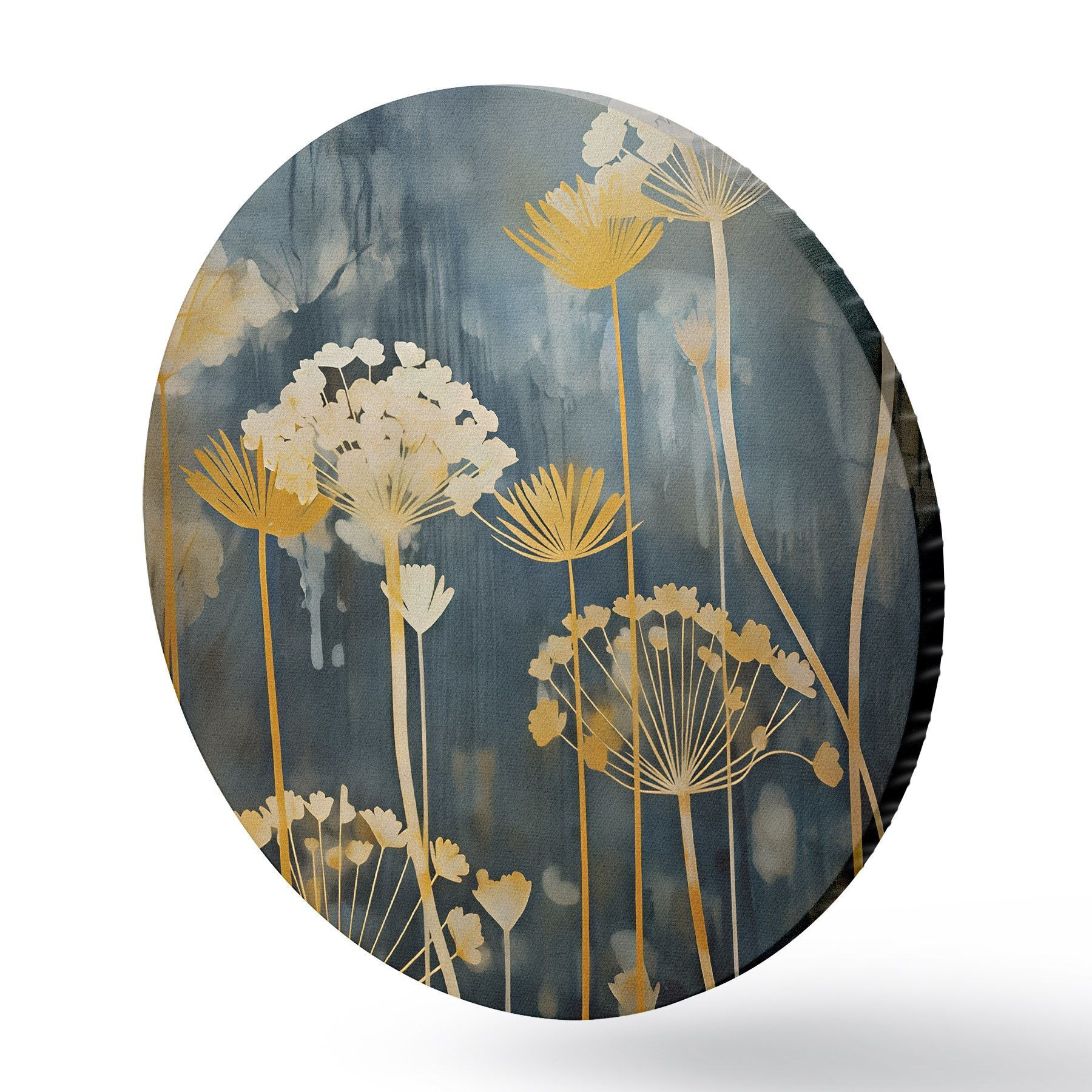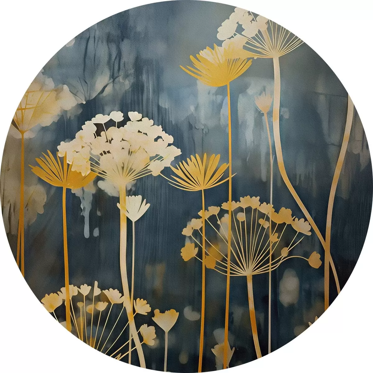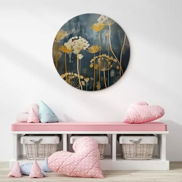 Tableaux rondes Fleurs stylisées aux tiges fines sur fond sombre Nr r46188