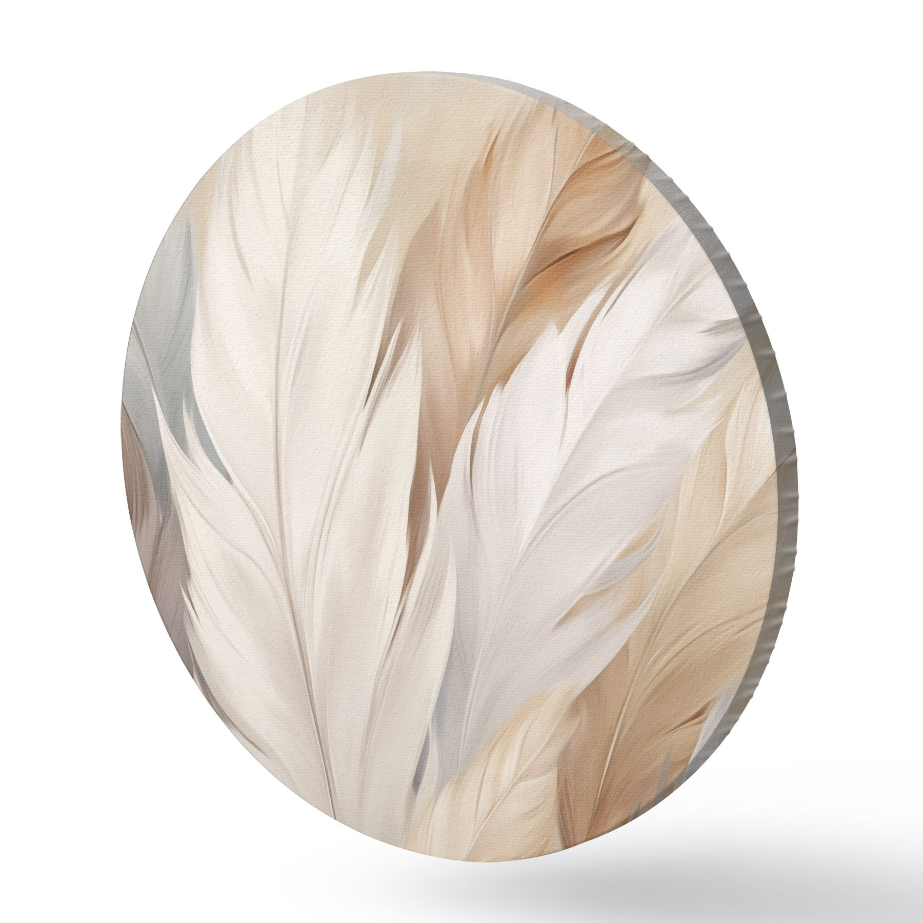 Tableaux rondes Plumes douces dans les tons beige et gris Nr r46190