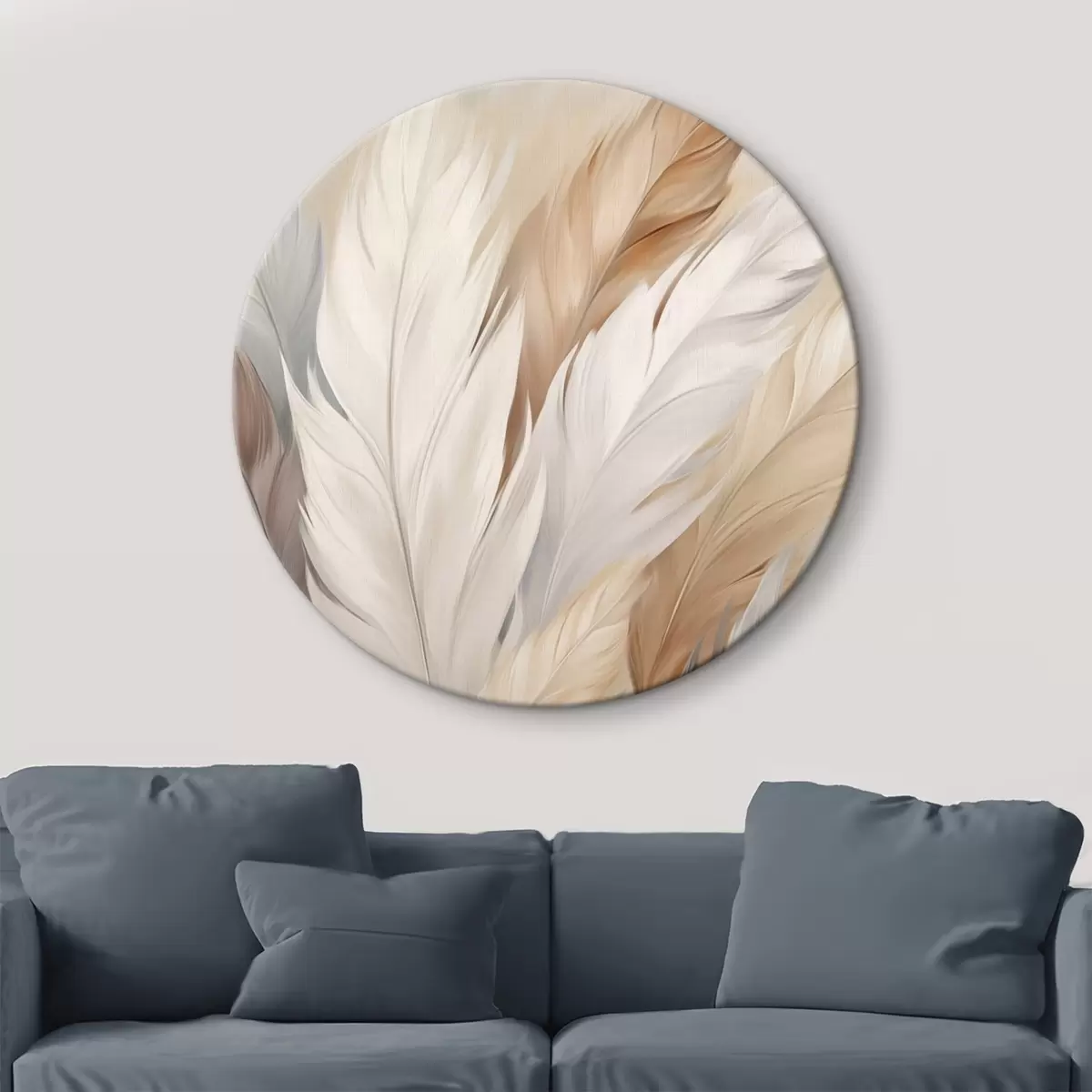 Tableaux rondes Plumes douces dans les tons beige et gris Nr r46190