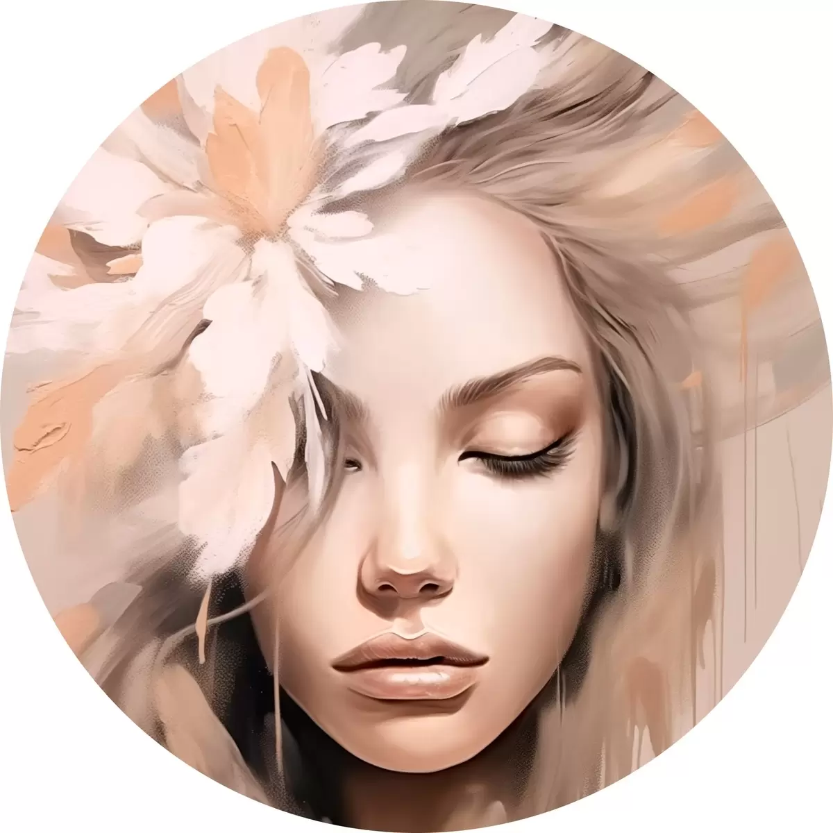 Tableaux rondes Portrait de femme avec une fleur Nr r46218