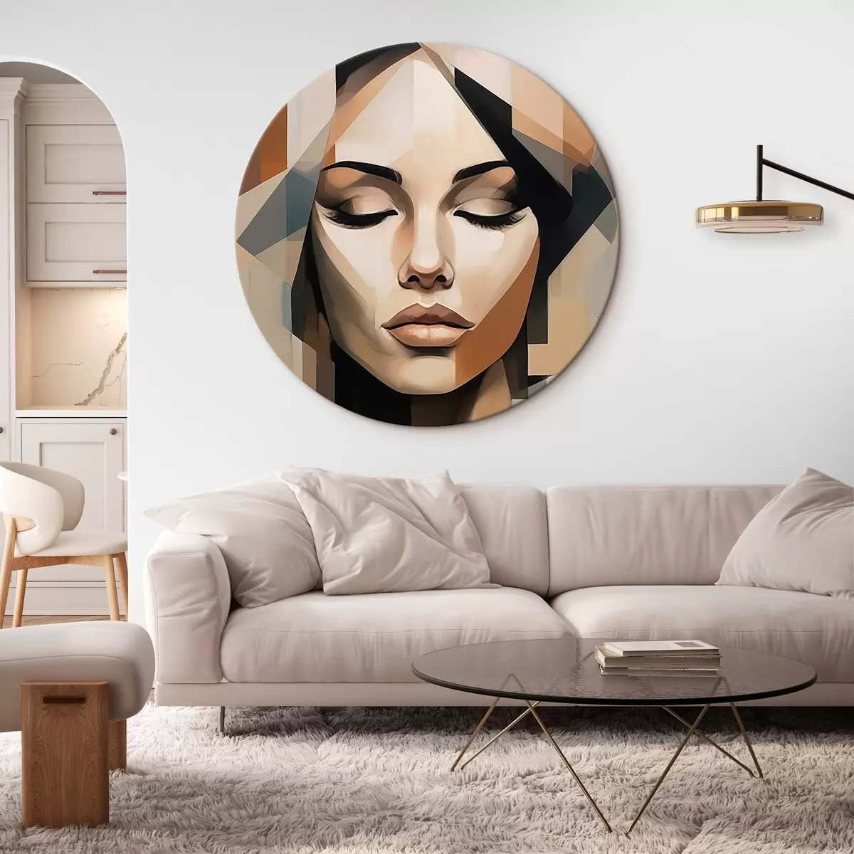 Tableaux rondes Portrait géométrique féminin Nr r46220