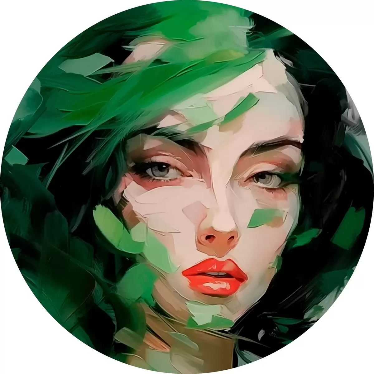 Tableaux rondes Portrait féminin abstrait Nr r46224