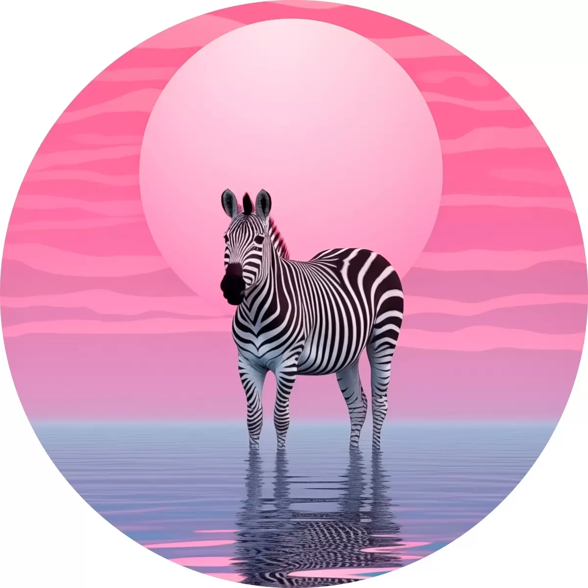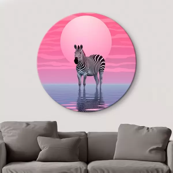 Tableaux rondes Zèbre au coucher du soleil Nr r46230