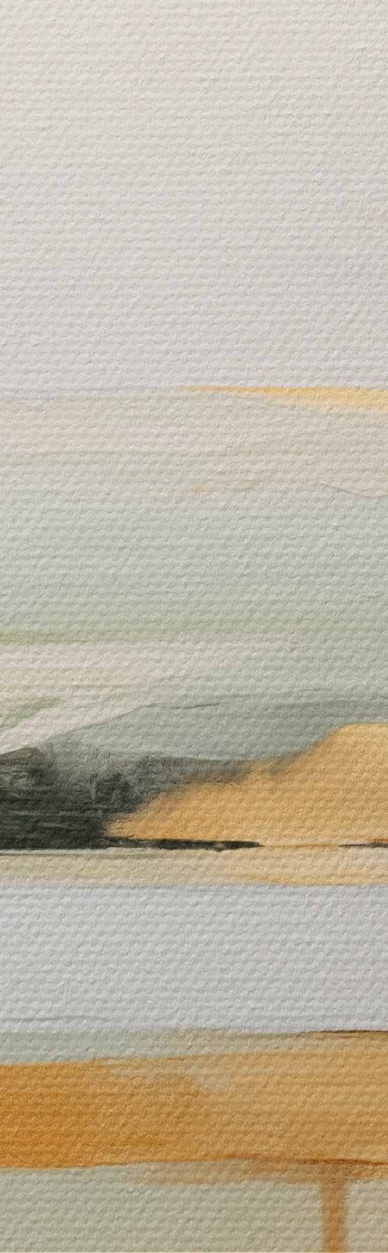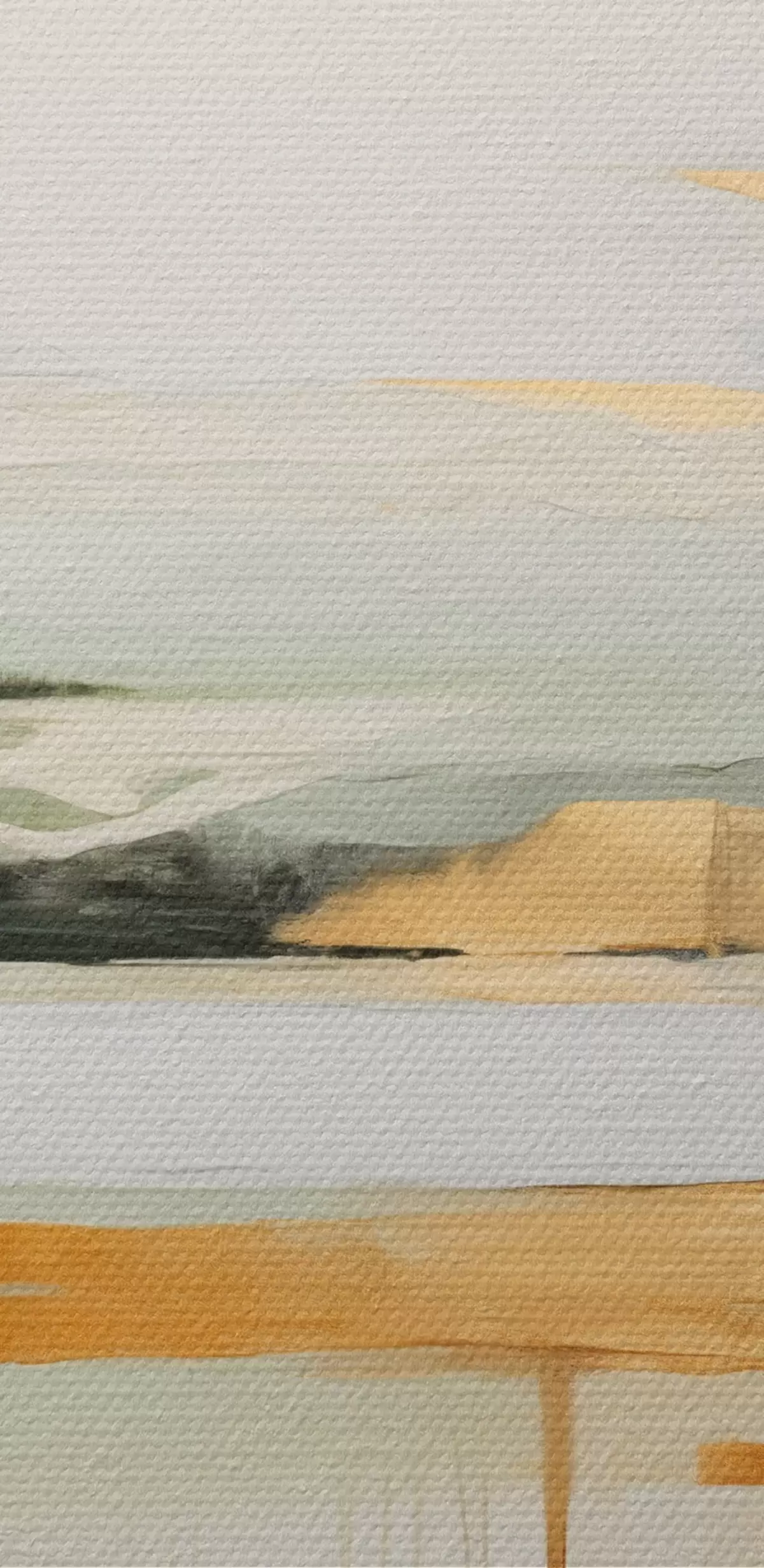 Tableaux rondes Paysage abstrait avec des accents jaunes, une composition minimaliste de terre, d'eau et de ciel, avec des couleurs douces r46268