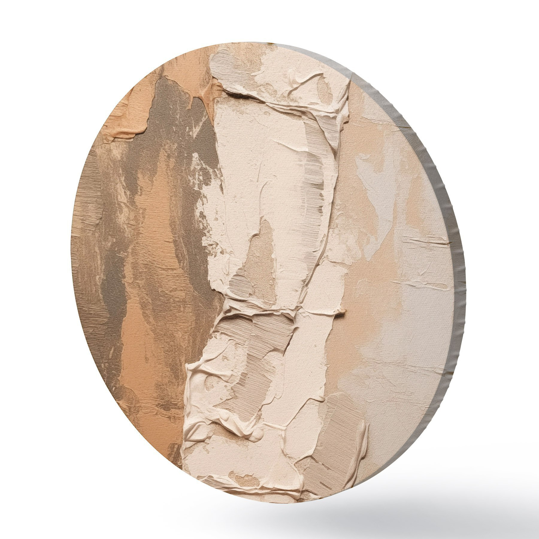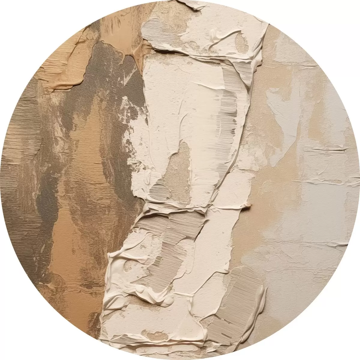 Tableaux rondes Peinture abstraite aux coups de pinceau épais, tons beiges et bruns, surface texturée, palette de couleurs neutres Nr r46272