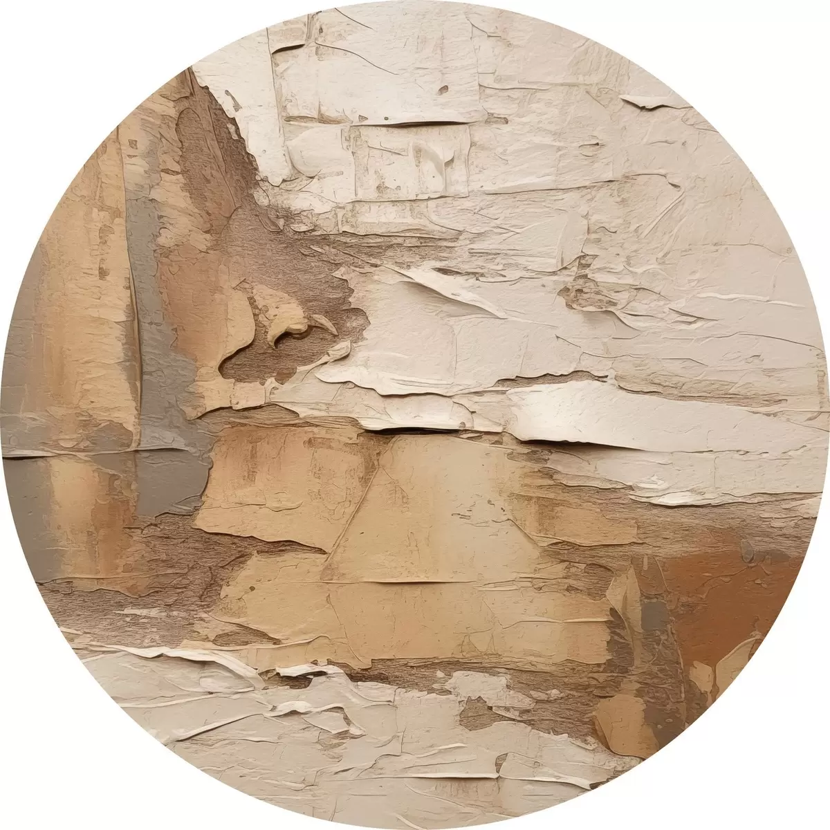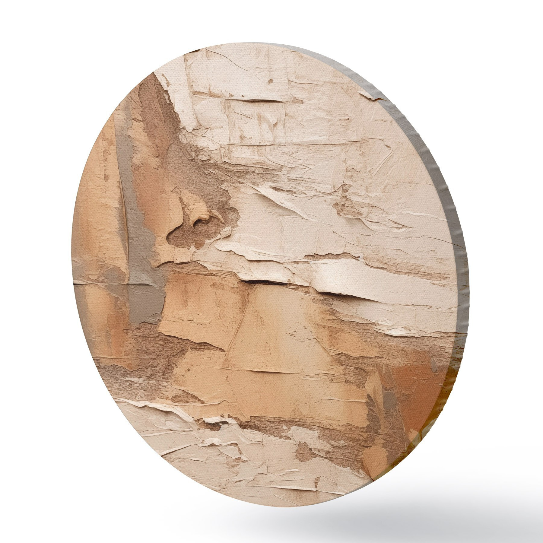 Tableaux rondes Peinture abstraite aux coups de pinceau épais, tons beiges et bruns, surface texturée, palette de couleurs neutres Nr r46273