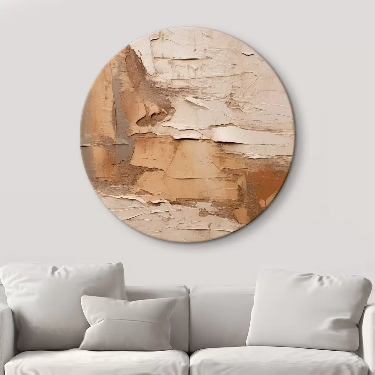 Tableaux rondes Peinture abstraite aux coups de pinceau épais, tons beiges et bruns, surface texturée, palette de couleurs neutres Nr r46273