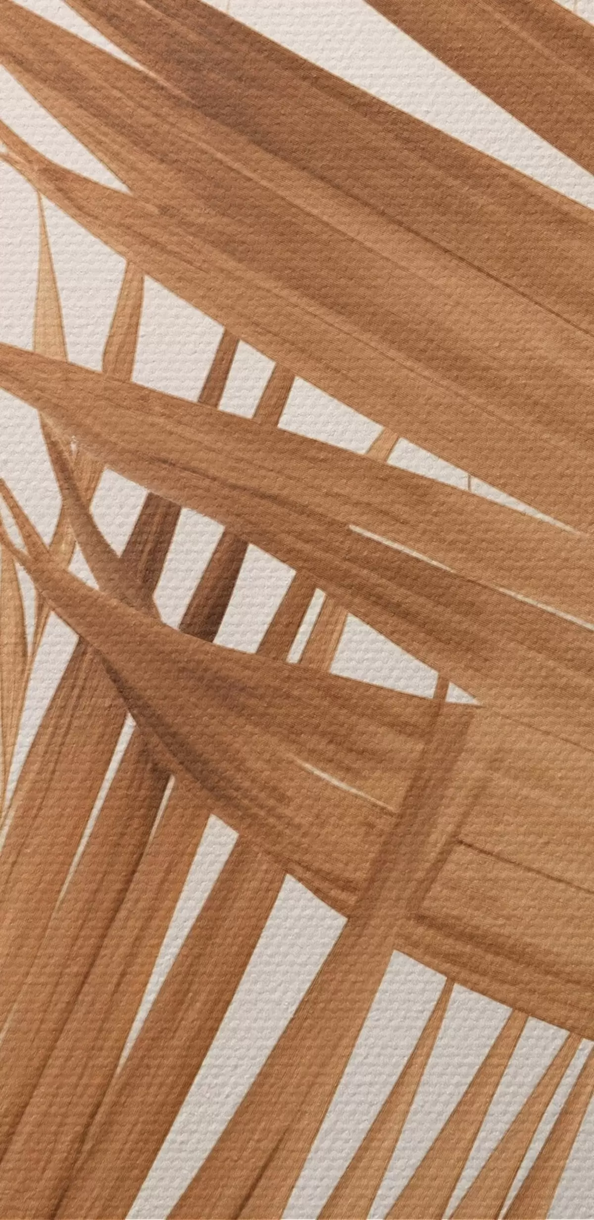 Tableaux rondes Feuilles de palmier dans des tons bruns, fond neutre, style minimaliste, éclairage naturel, ambiance tropicale r46274