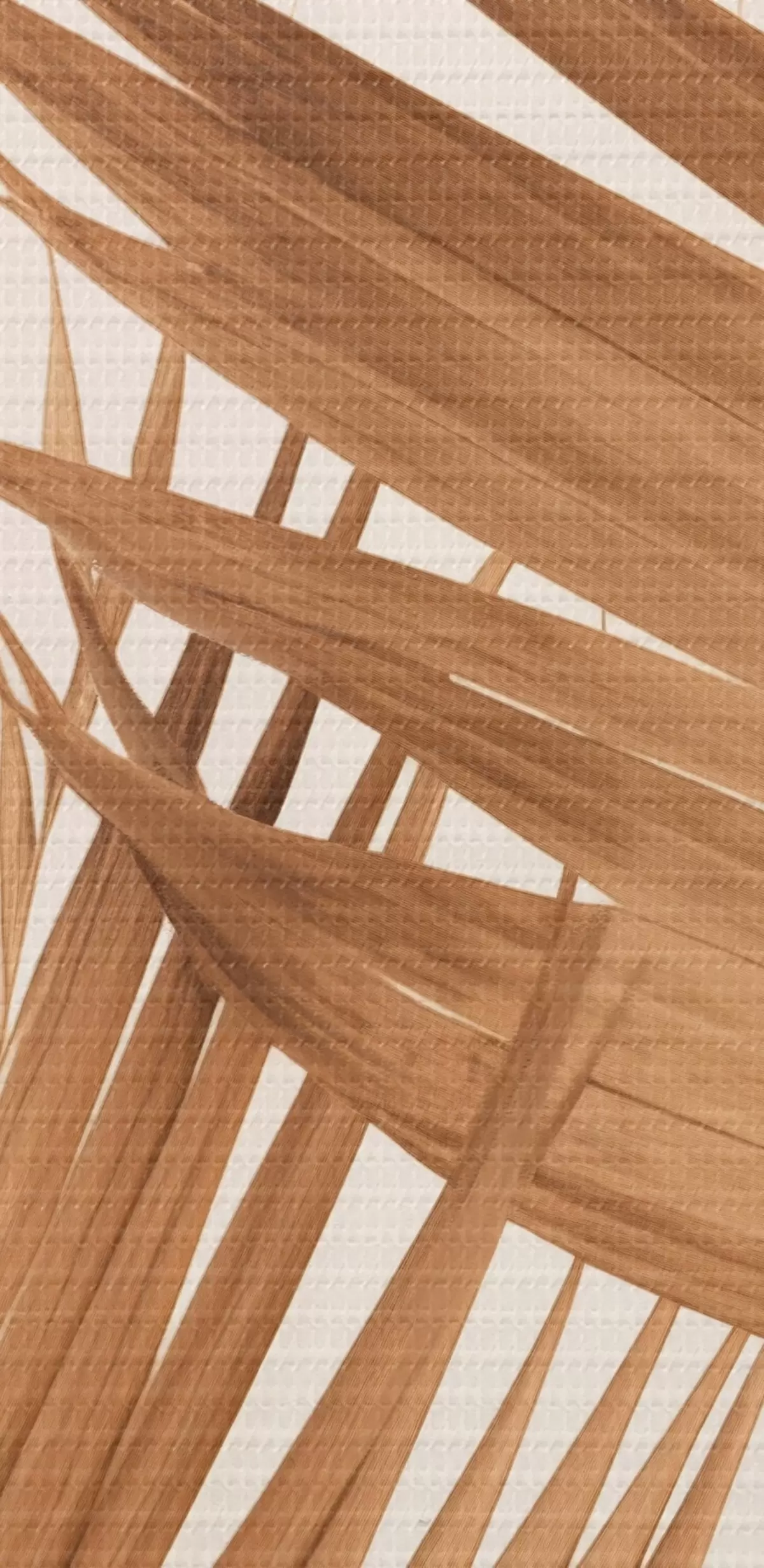 Tableaux rondes Feuilles de palmier dans des tons bruns, fond neutre, style minimaliste, éclairage naturel, ambiance tropicale Nr r46274